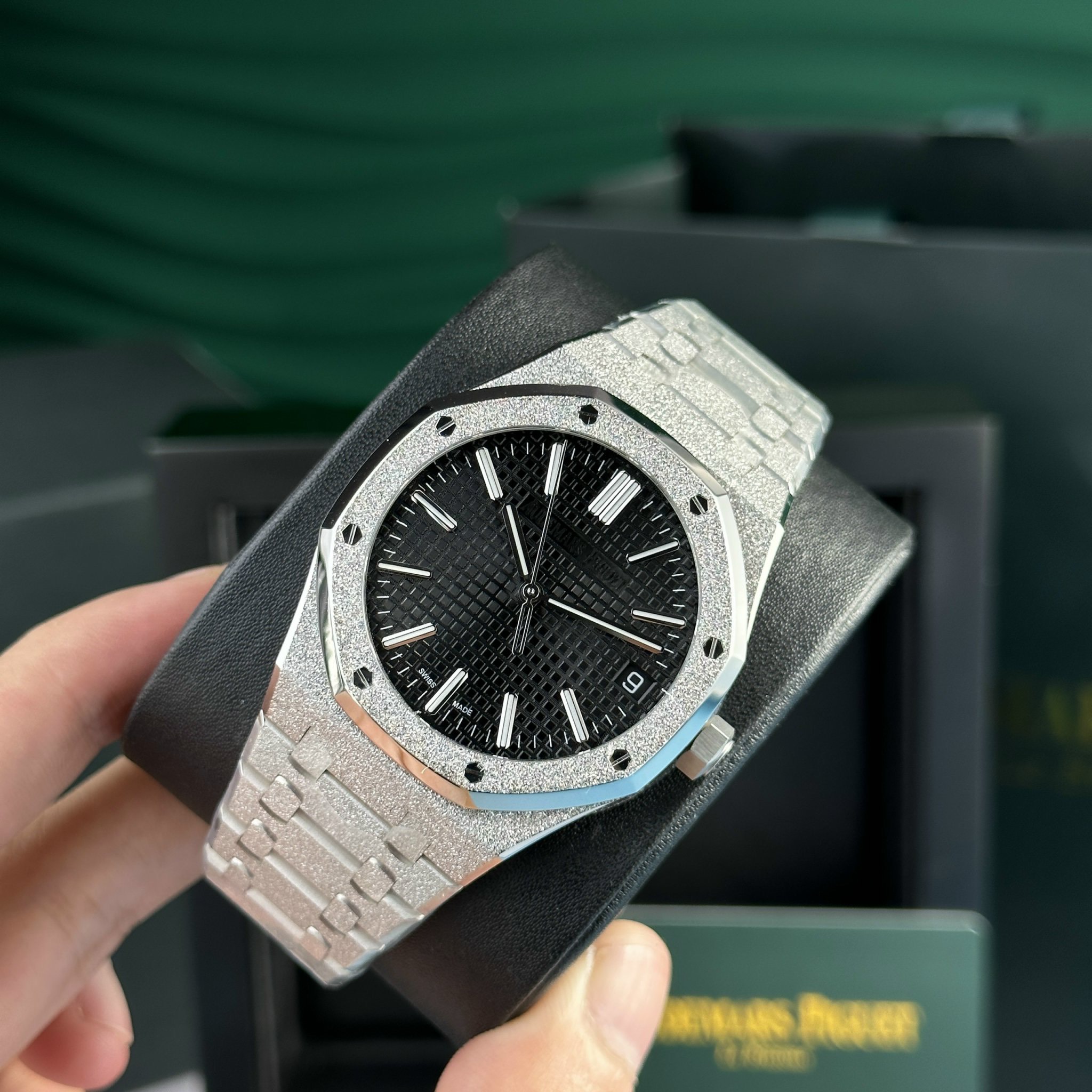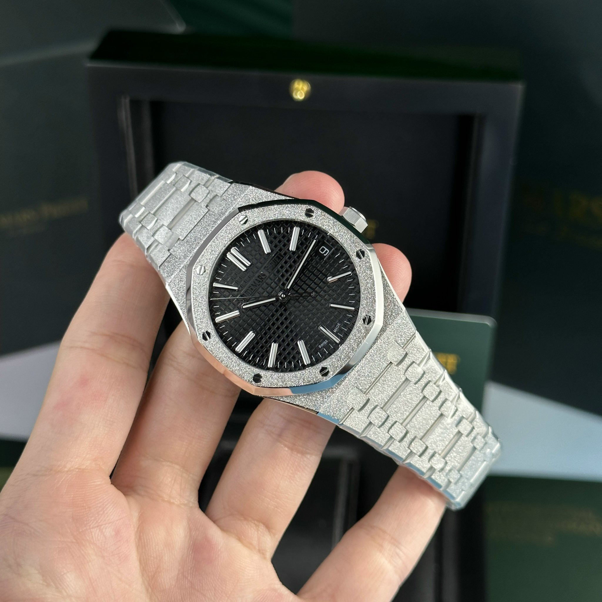 Audemars Piguet Royal Oak 15500ST Frosted Gold Black Dial APS Factory is available at DWatch Global.