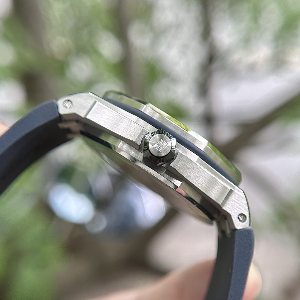 Youthful and Sporty Style: The Audemars Piguet Royal Oak Offshore 15720ST Blue Replica APS epitomizes a youthful and sporty style in its design. With its robust exterior, this timepiece exudes dynamism and the generous personality of its wearer. APS Factory Excellence: This product stands as a notable achievement of the APS Factory – a renowned hub for exquisite craftsmanship in the watchmaking industry. The combination of precision engineering and high-quality movement results in a remarkable high-end replica timepiece. Powerful and Impressive Design: With its sturdy and commanding design, this watch model belongs to the Royal Oak Offshore collection by Audemars Piguet. Its daring and distinctive lines create a unique imprint, providing a prominent accent for its wearer.