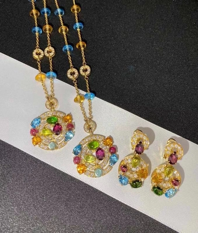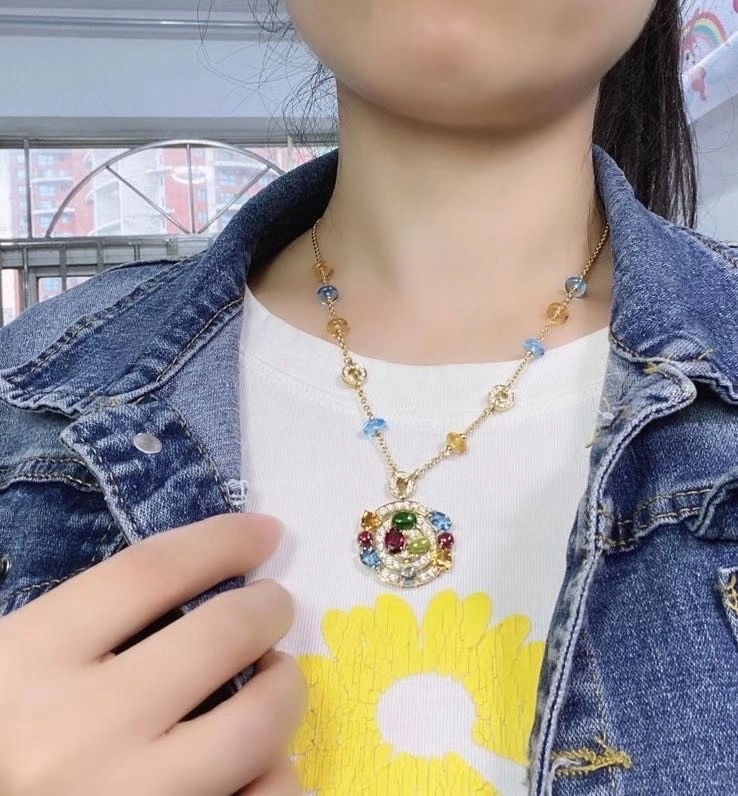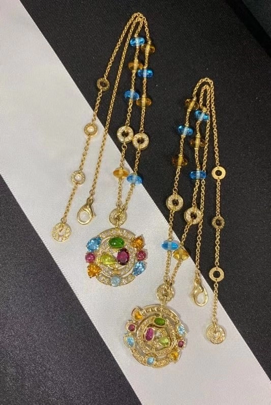 Bvlgari Astrale Pendant Necklace Custom Diamond 18K Gold