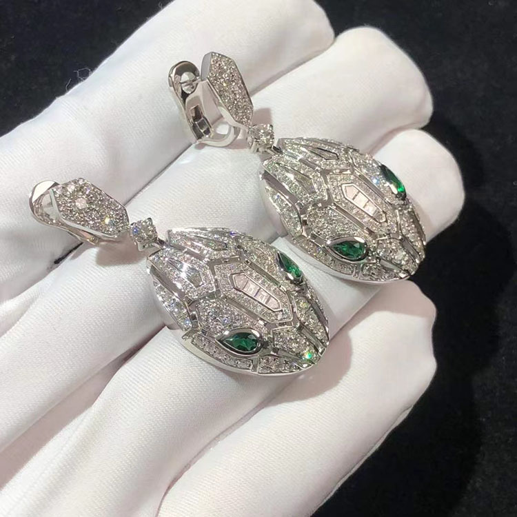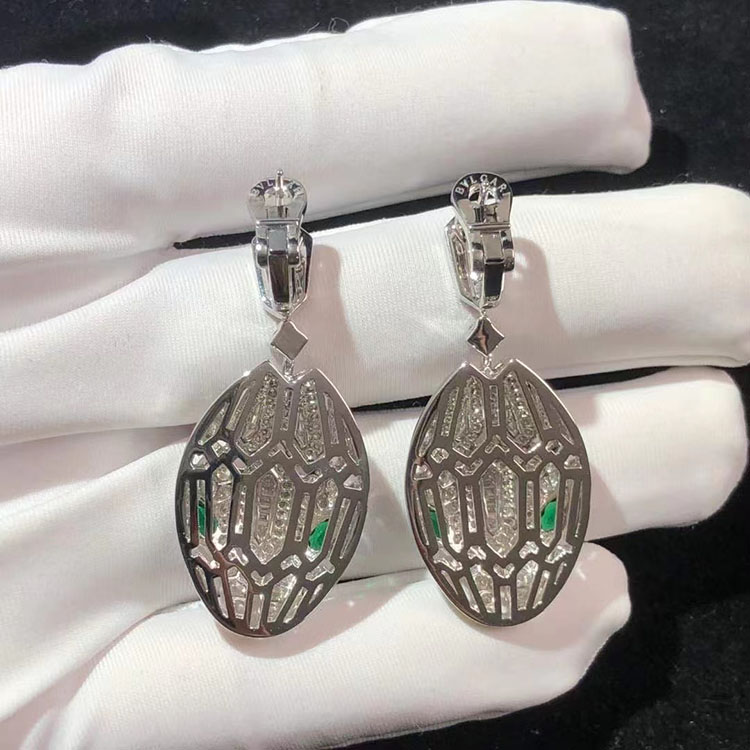 BVLGari Serpenti Earring Remake Emerald Diamond 18K White Gold