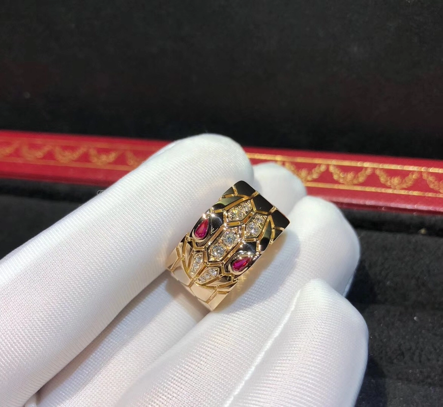 Bvlgari Serpenti Rings Custom Ruby Diamond 18K Rose Gold