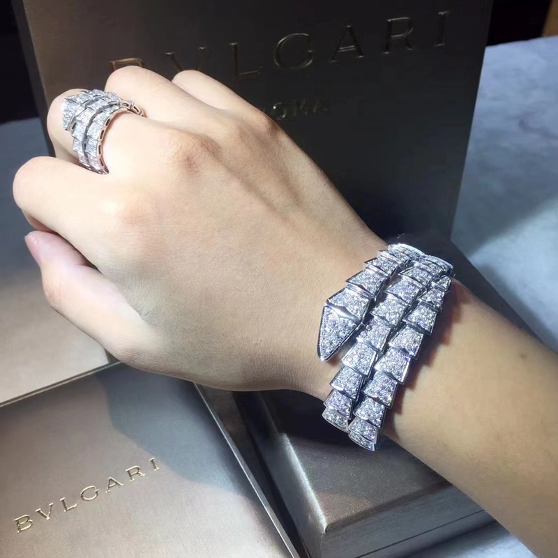 Bvlgari Serpenti Viper Bracelet Diamond Custom White Gold 18K