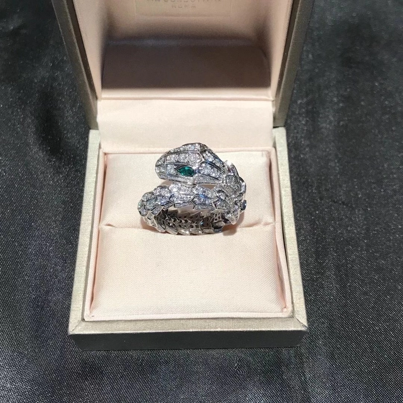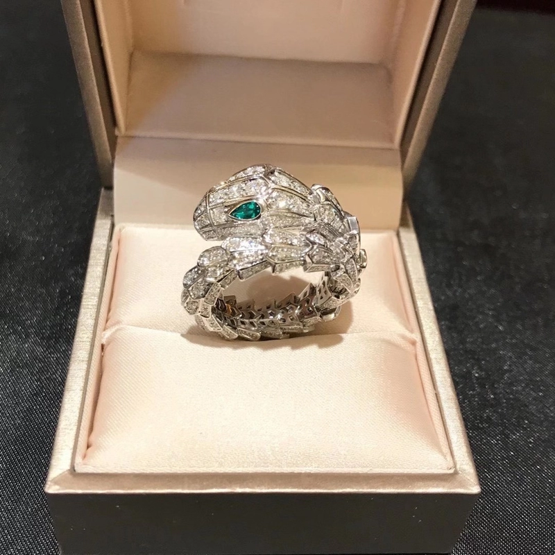 Bvlgari Serpenti Viper Rings Custom Diamond 18K White Gold Emerald Eyes