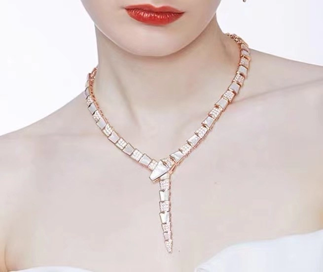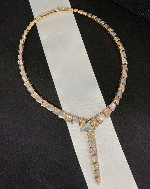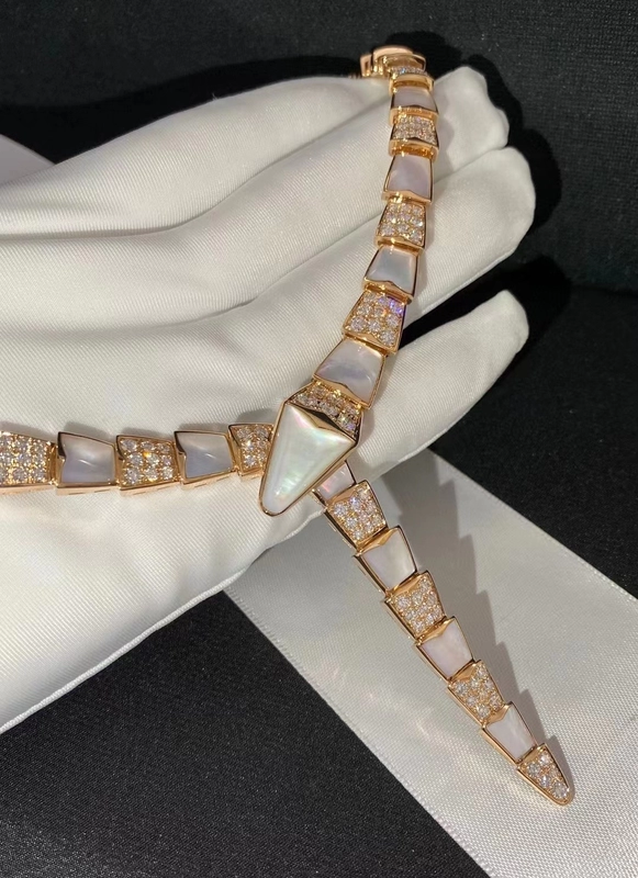 Bvlgari Serpenti Viper Womens Necklace Custom 18K Rose Gold Diamond