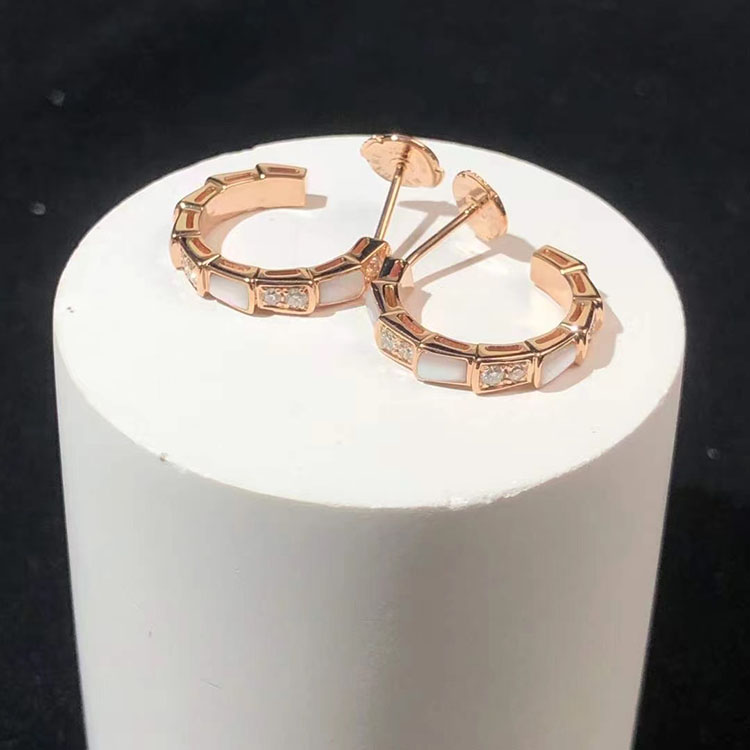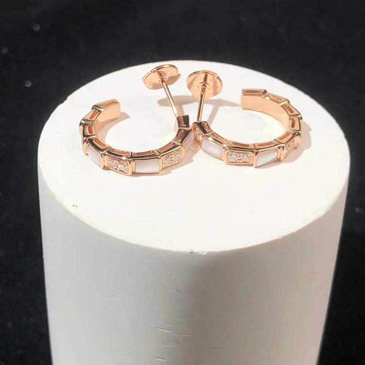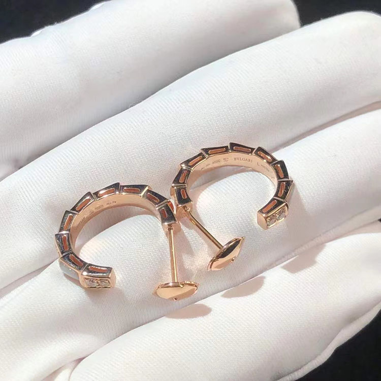 BVLGari Serpenti Vipper Earring Gemstone Diamond 18K Rose Gold Custom