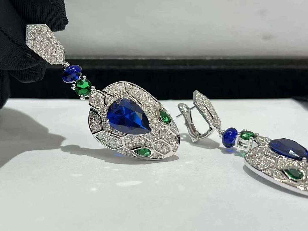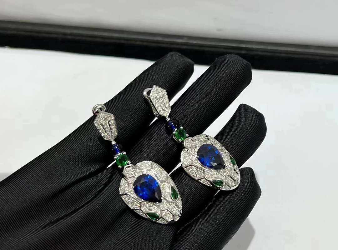 Bvlgari Serpenti Womens Earrings Custom 18K White Gold Diamond