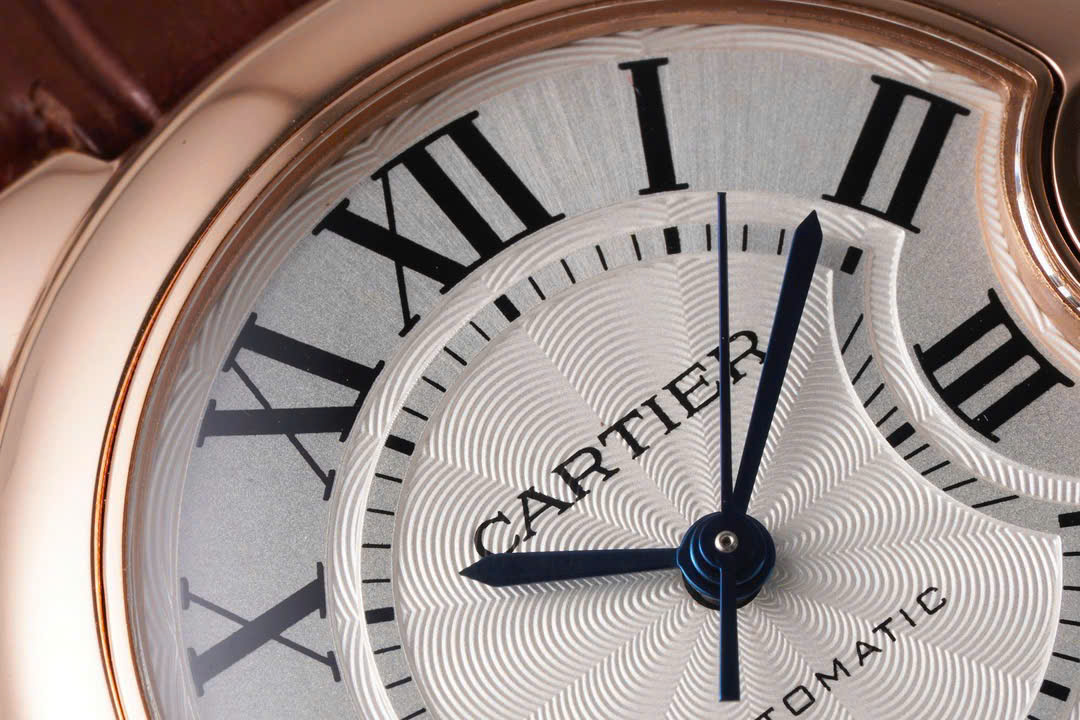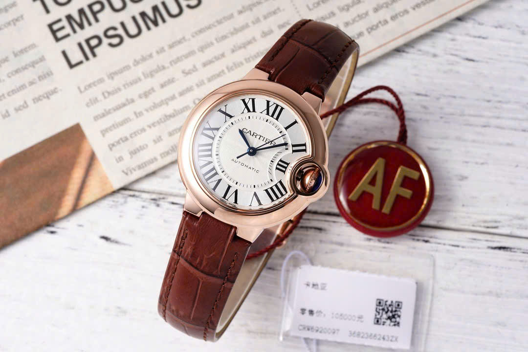 Beneath the clear sapphire crystal, the Cartier Ballon Bleu Lady Knock Off Watches Brown Leather Strap AF Factory showcases a silver dial with mesmerizing wave patterns radiating from the center across the dial.