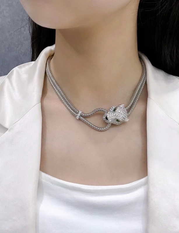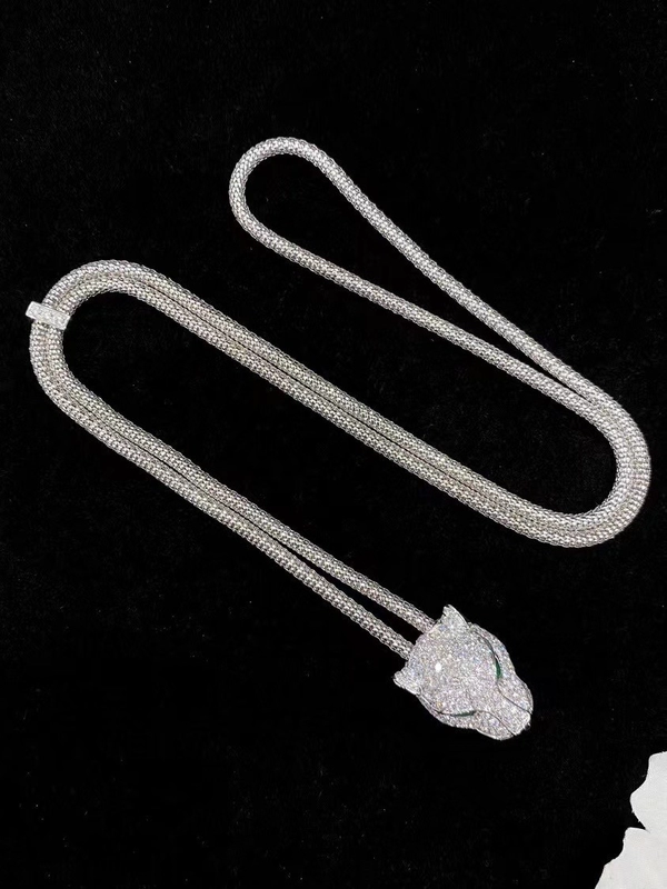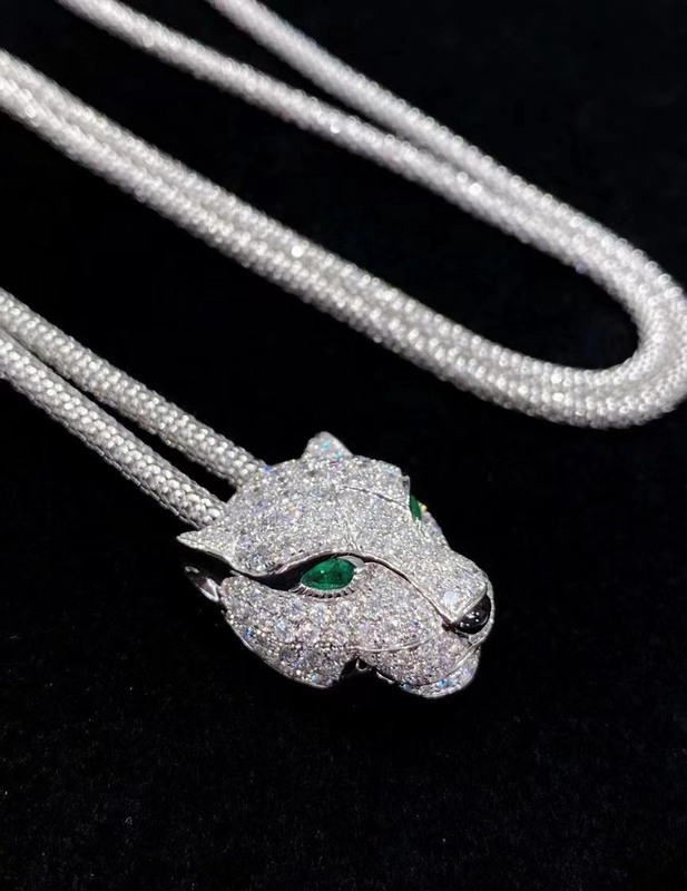 Cartier Necklace And Bracelet Leopard Head Pendant Custom 18K White Gold Diamond