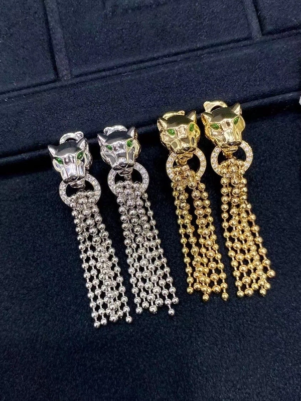 Cartier Panther Earrings Diamond Emerald Onyx 18K Gold Custom
