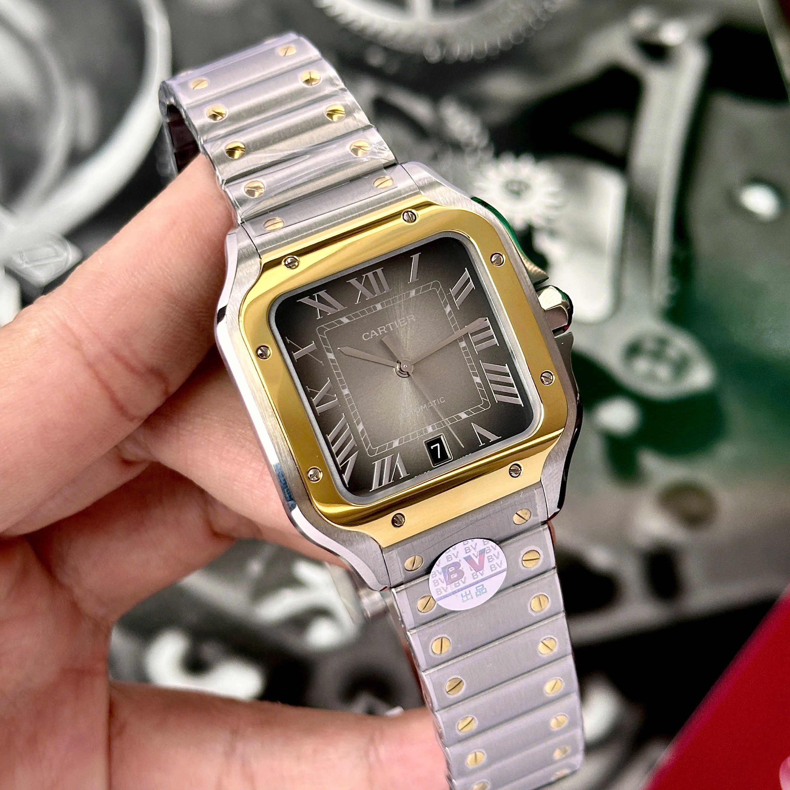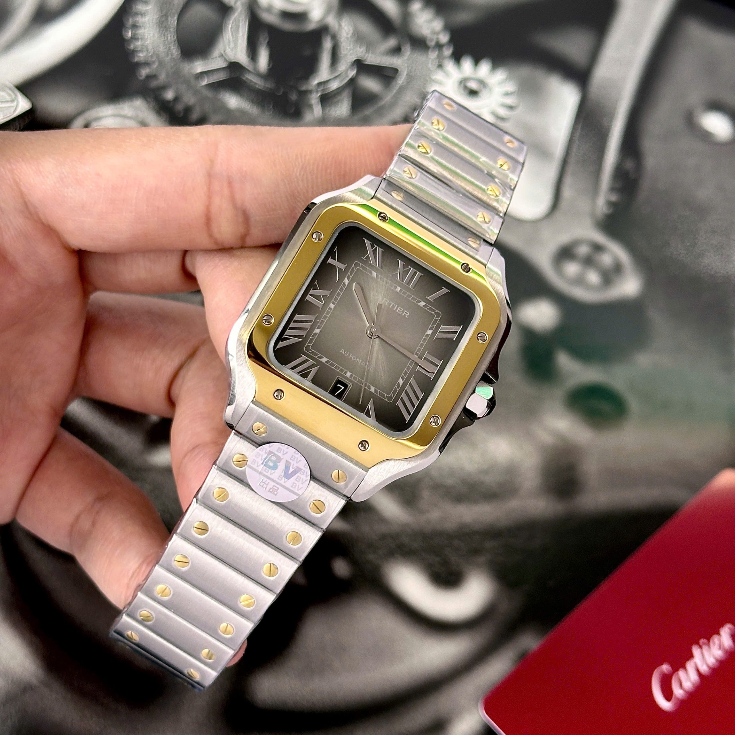 Cartier Santos CRW2SA0030 Gray Dial Demi Gold Best Replica BV Factory is available at DWatch Global.