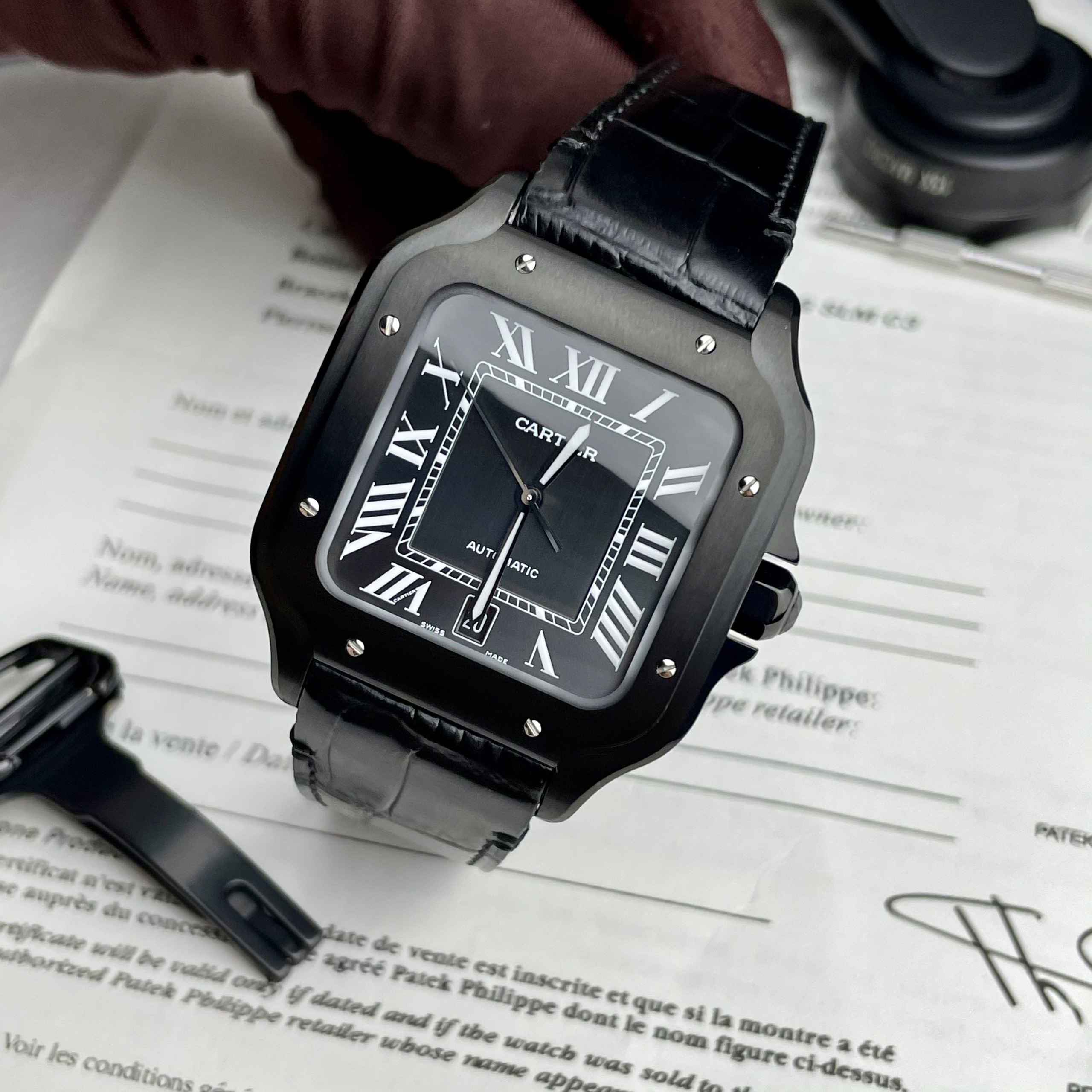 Cartier is a renowned brand for high-end jewelry and watches, and the Santos model offers a distinctive experience. Its design exudes strength and masculinity, featuring a square case with sharp edges. Notably, this 1:1 Cartier Replica watch showcases an all-black color scheme.