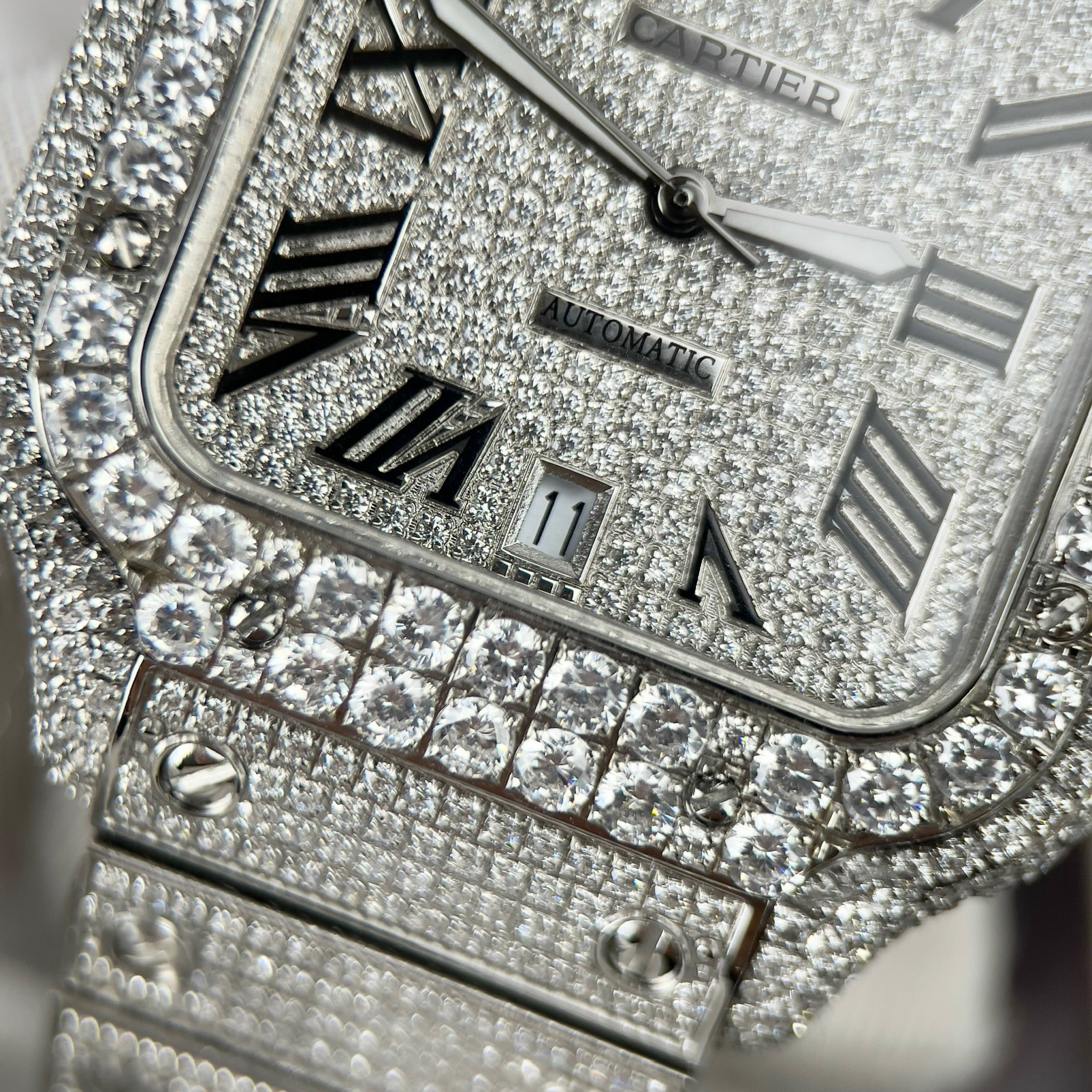 Cartier Santos Full Diamonds Swarovski Replica Watches