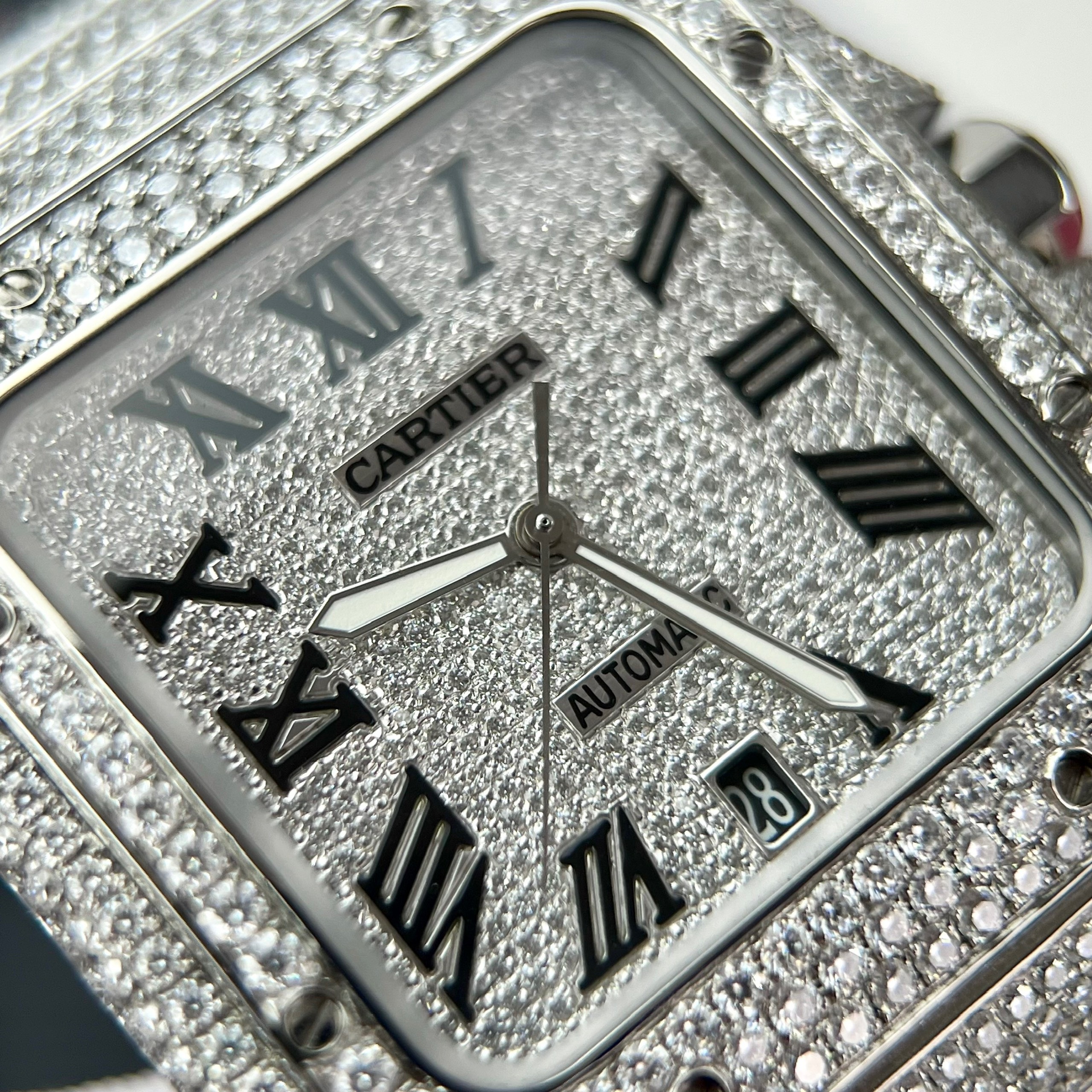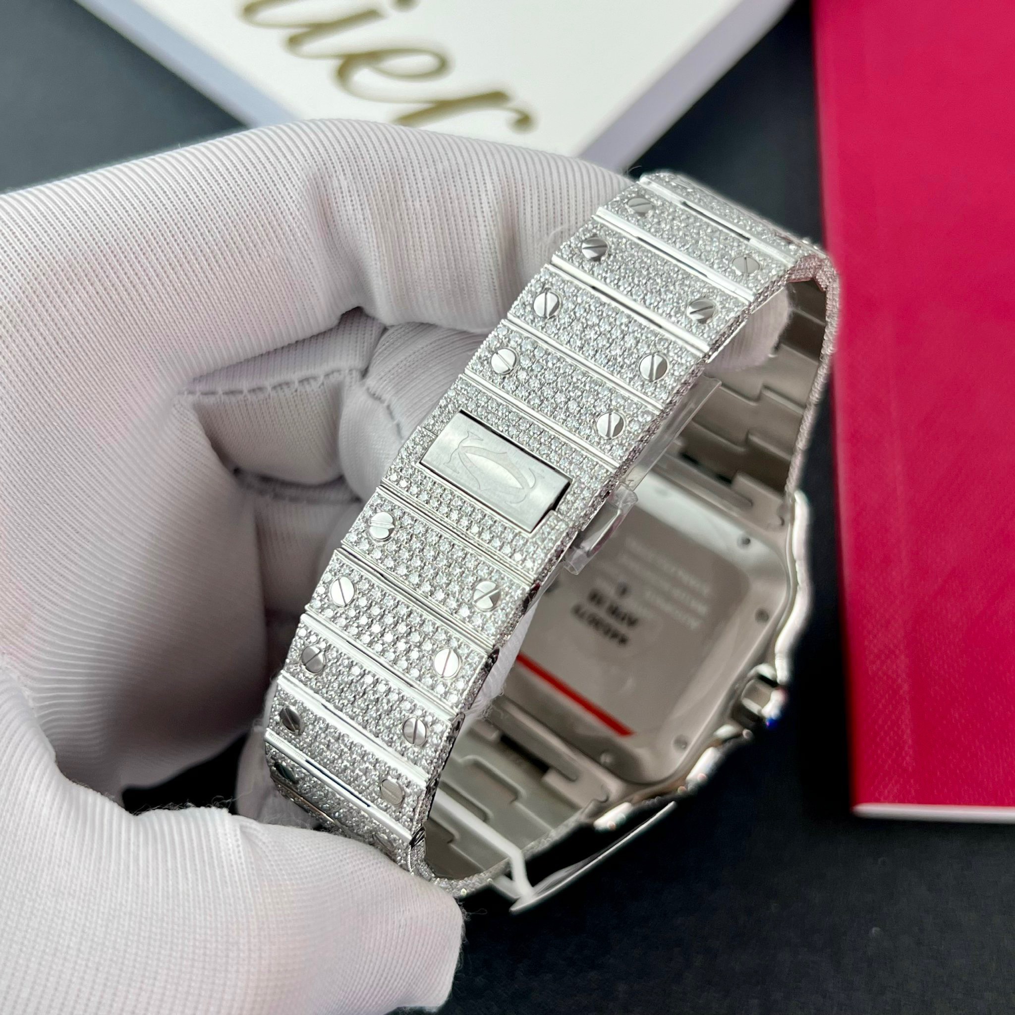 Cartier Santos Iced Out Moissanite Replica Watches BV Factory