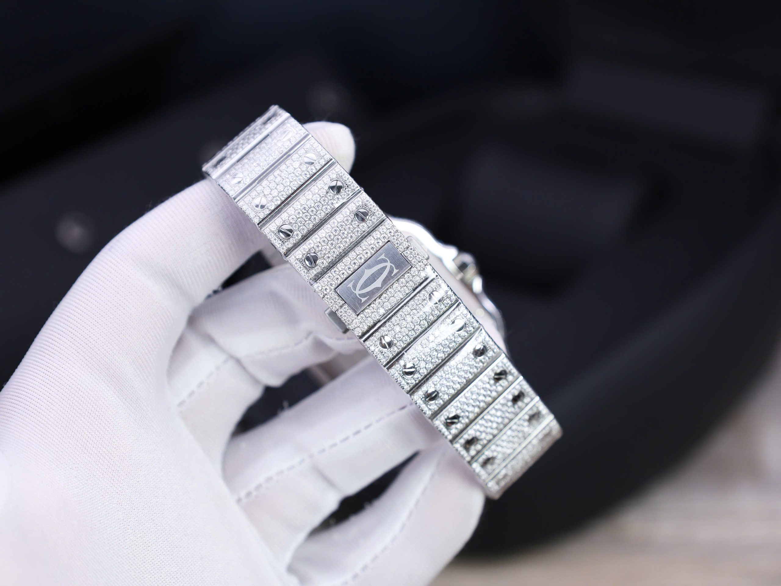 The Cartier Santos Replica Watches Custom Moissanite Diamonds – Hong Kong Replica 1:1 is a luxury masterpiece meticulously crafted by the renowned BV Factory in Hong Kong, known for producing flawless creations. This Cartier diamond-encrusted watch comes with clear certification from reputable authorities, ensuring its authenticity and quality.