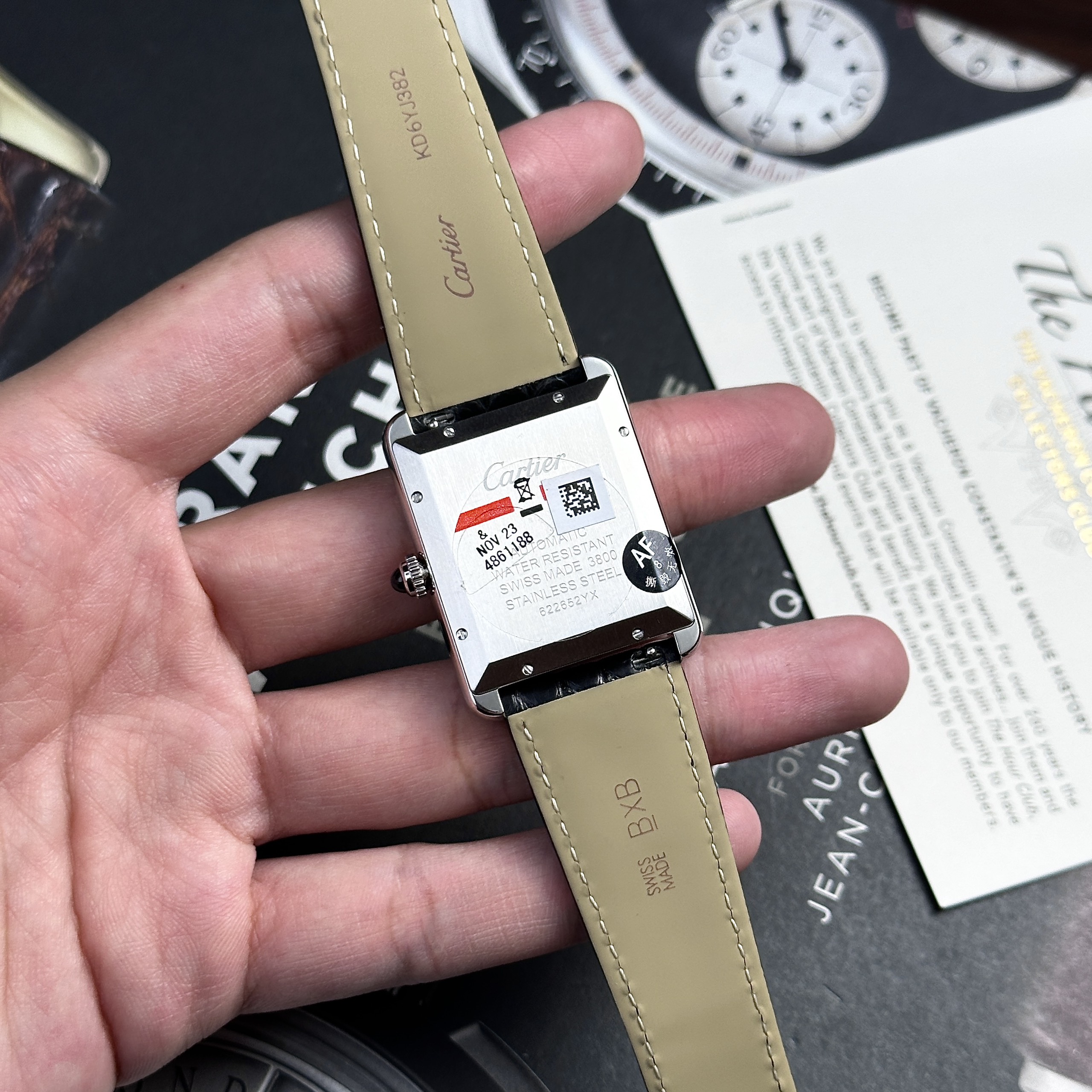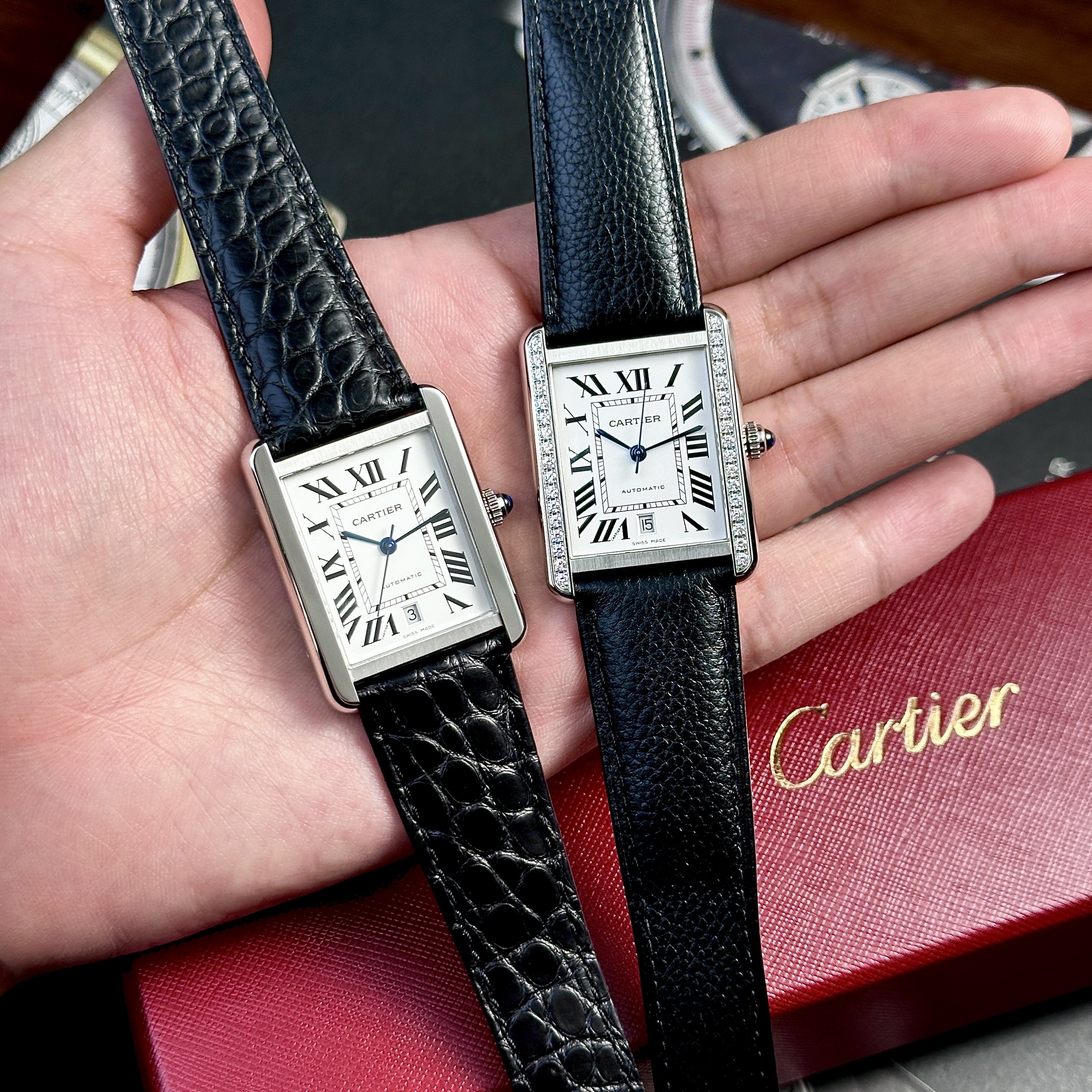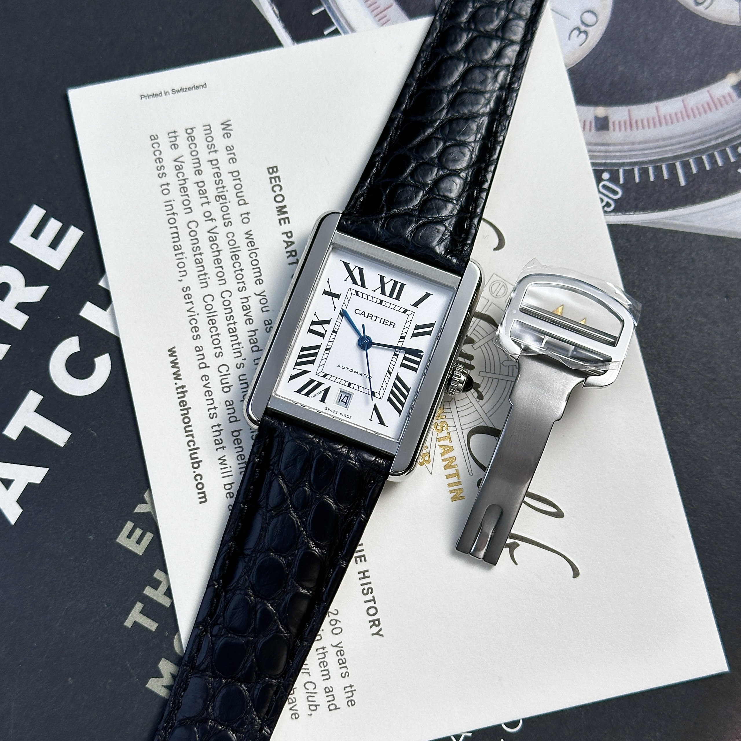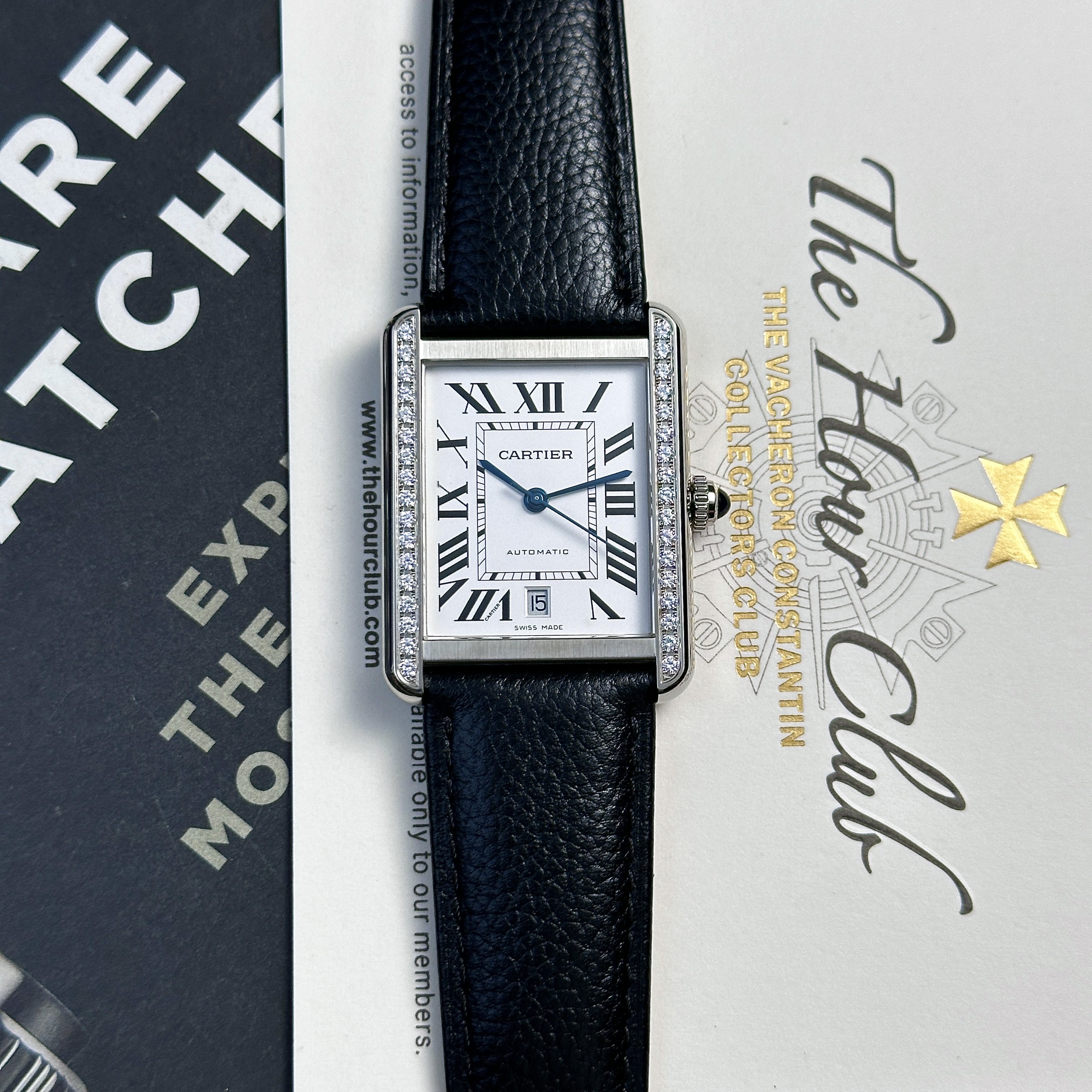 Cartier Tank Solo Extra-Large Model Automatic Black Leather Watch is available at DWatch Global.