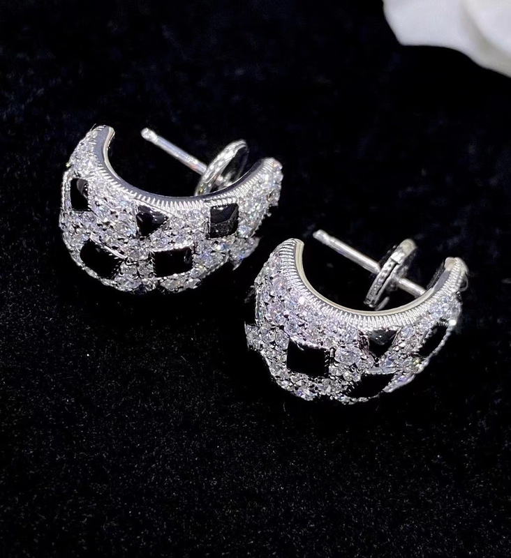 Cartier Womens Earrings Custom 18K White Gold Diamond