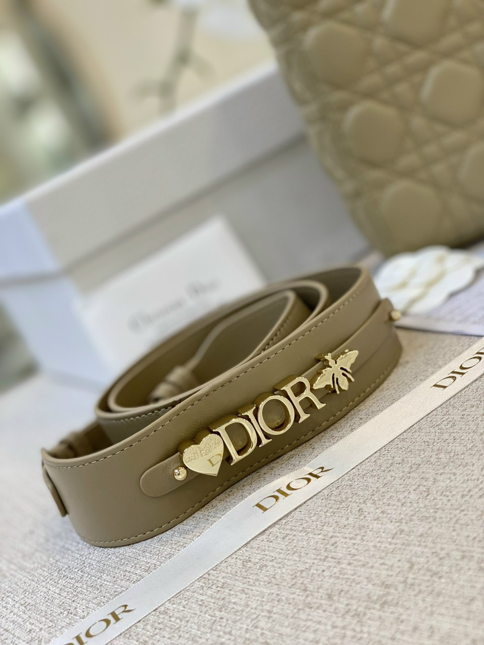 Dior Lady Replica Bags Beige Cannage Lambskin Size 20cm