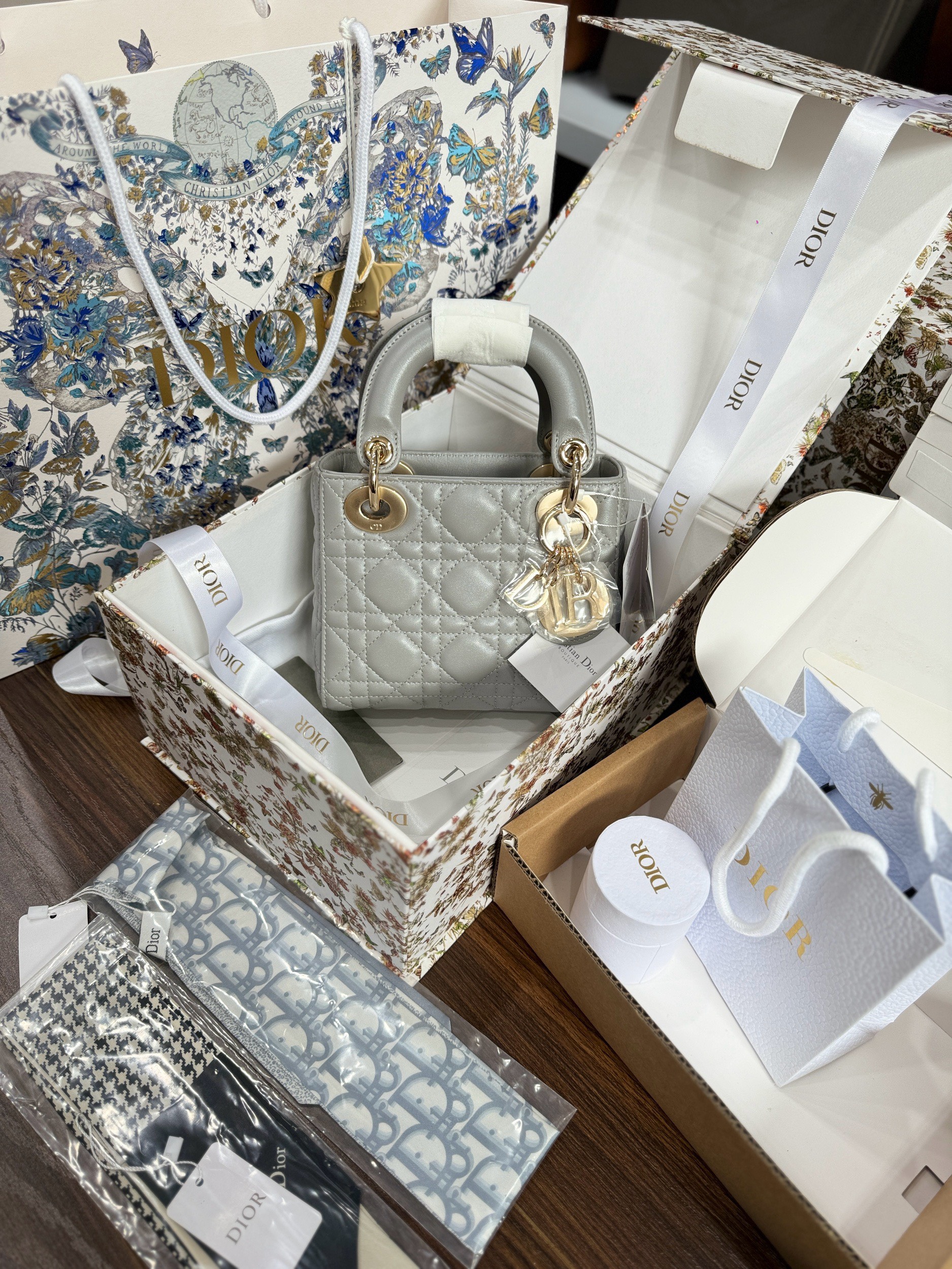 Dior Lady Womens Gray Best Replica Bags Gold Lock 17cm