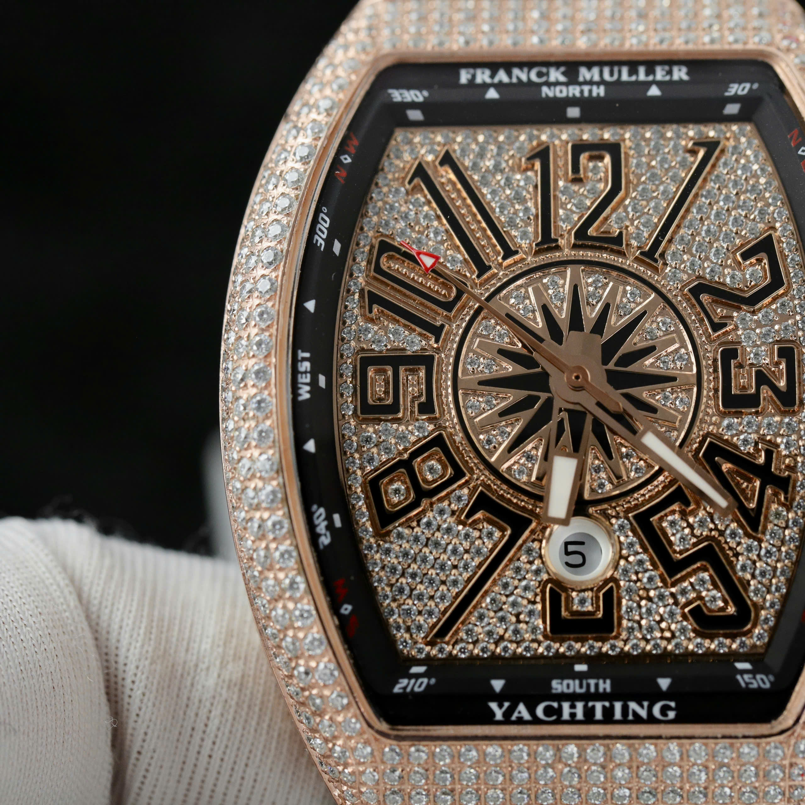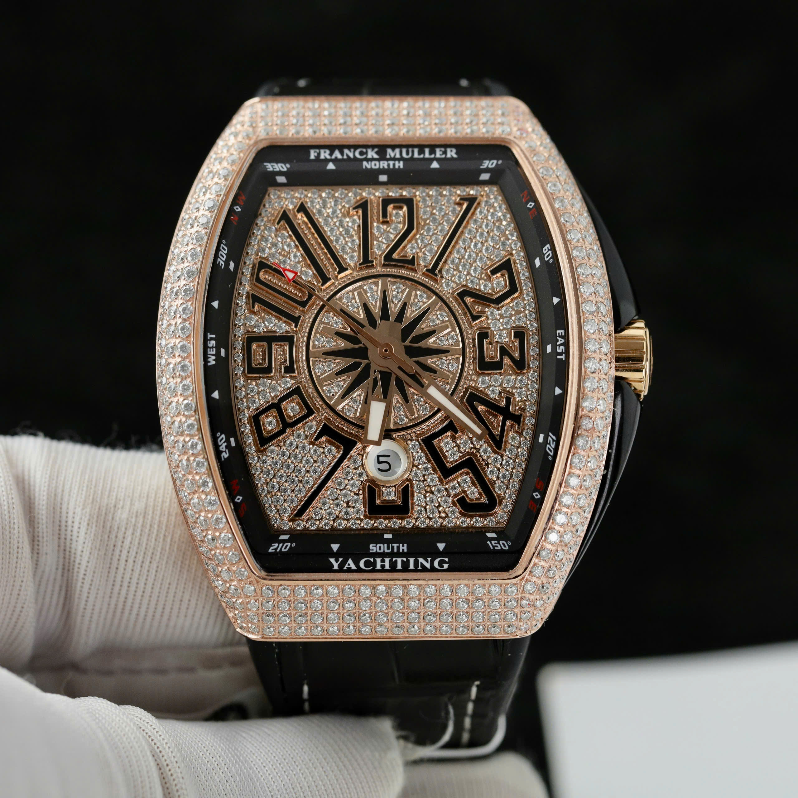 Franck Muller V45 Replica Watch Custom Moissanite Diamonds ABF Factory is available at DWatch Global.