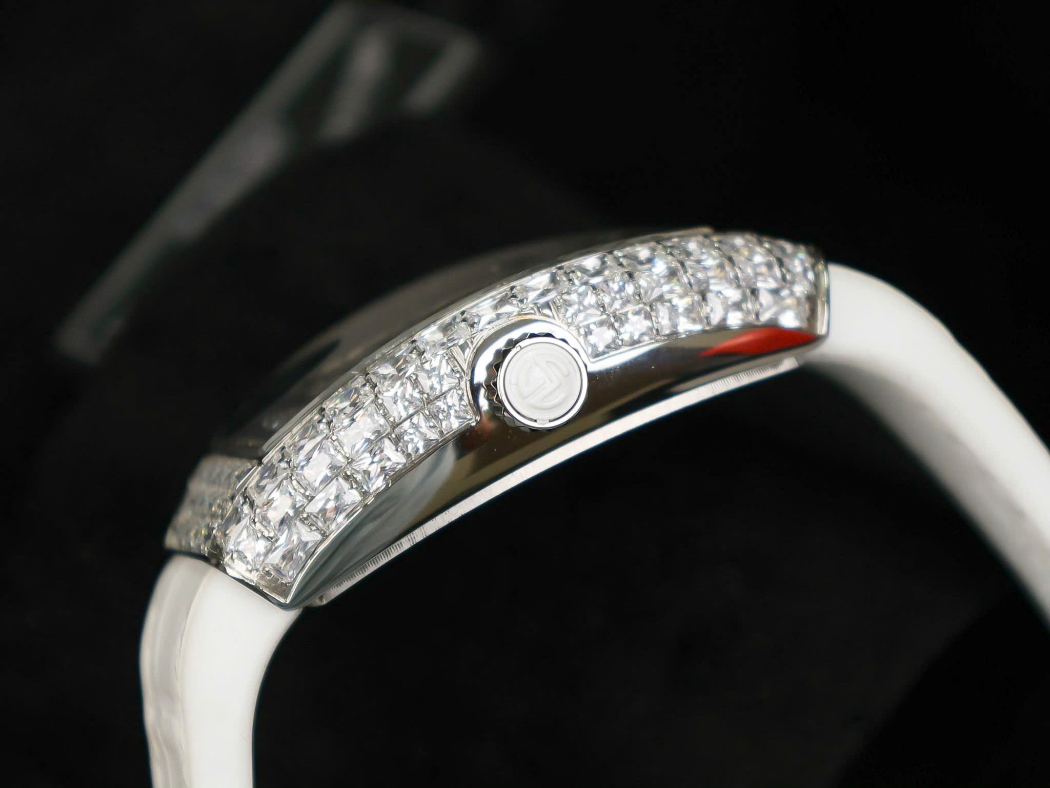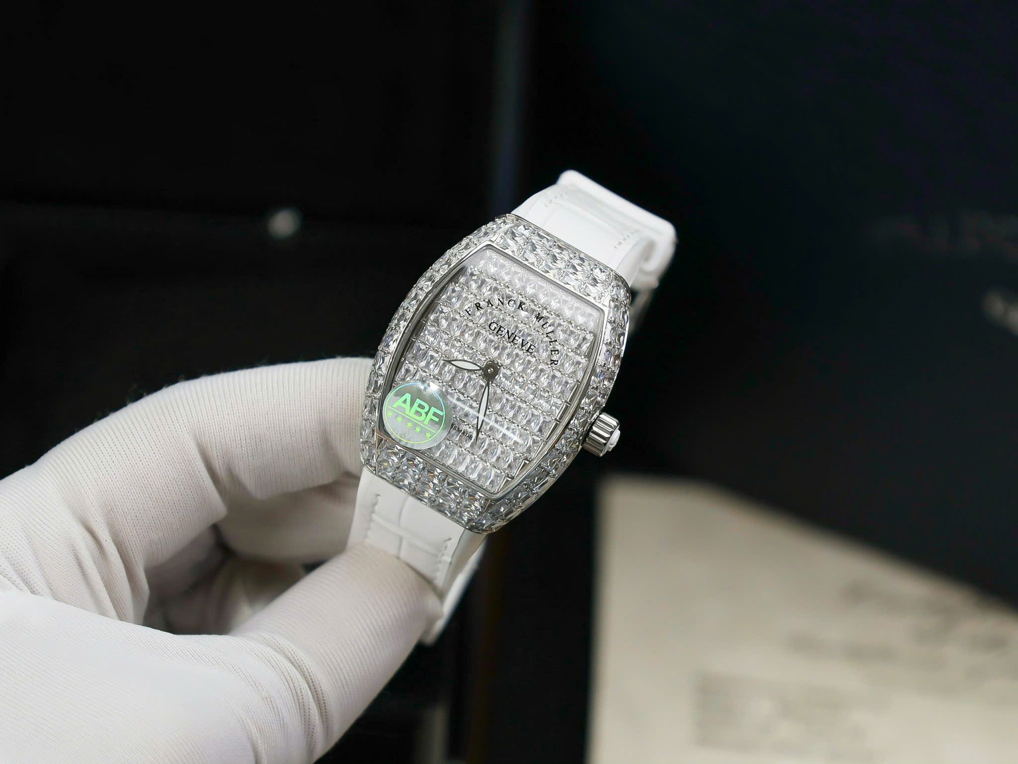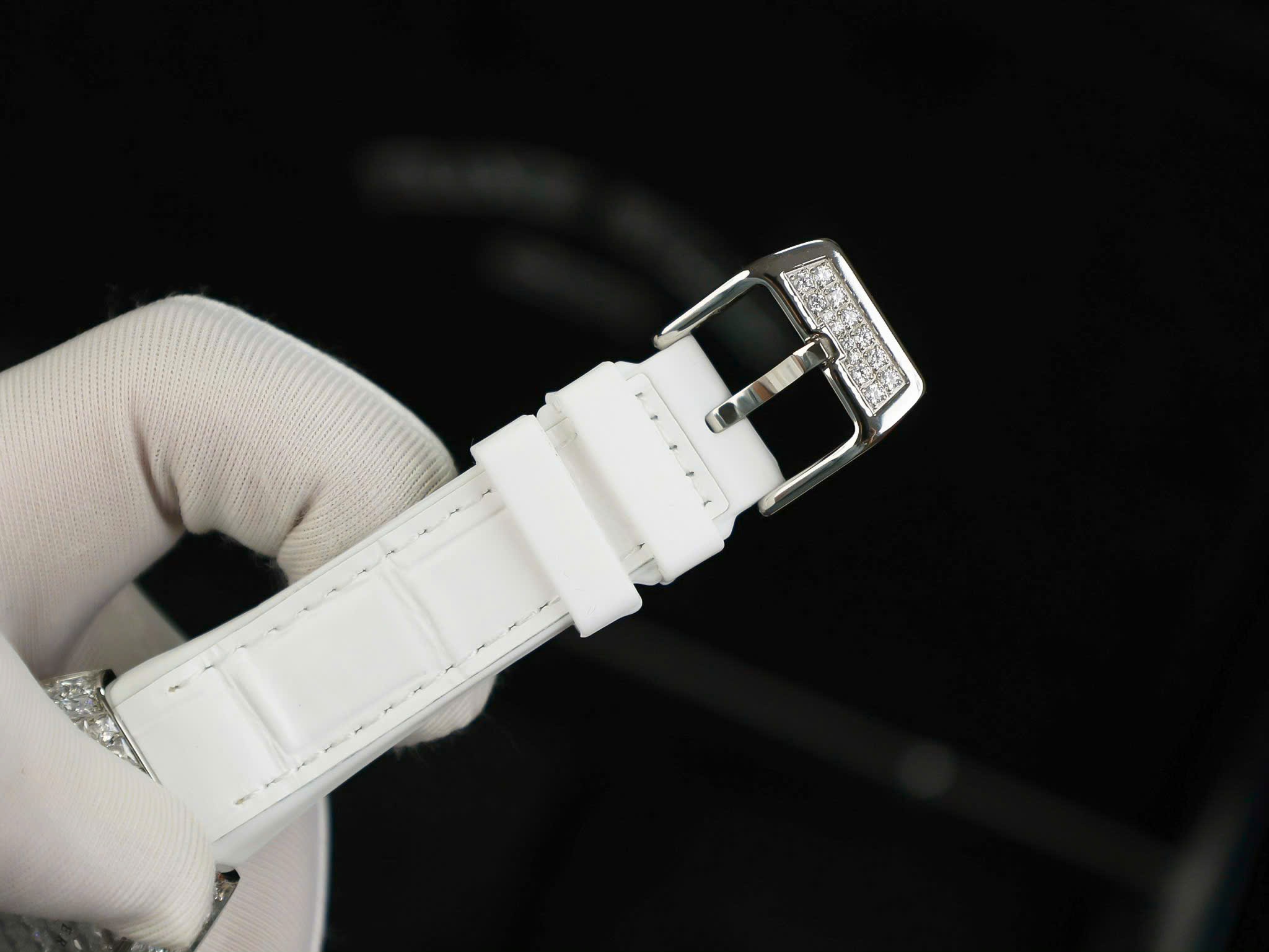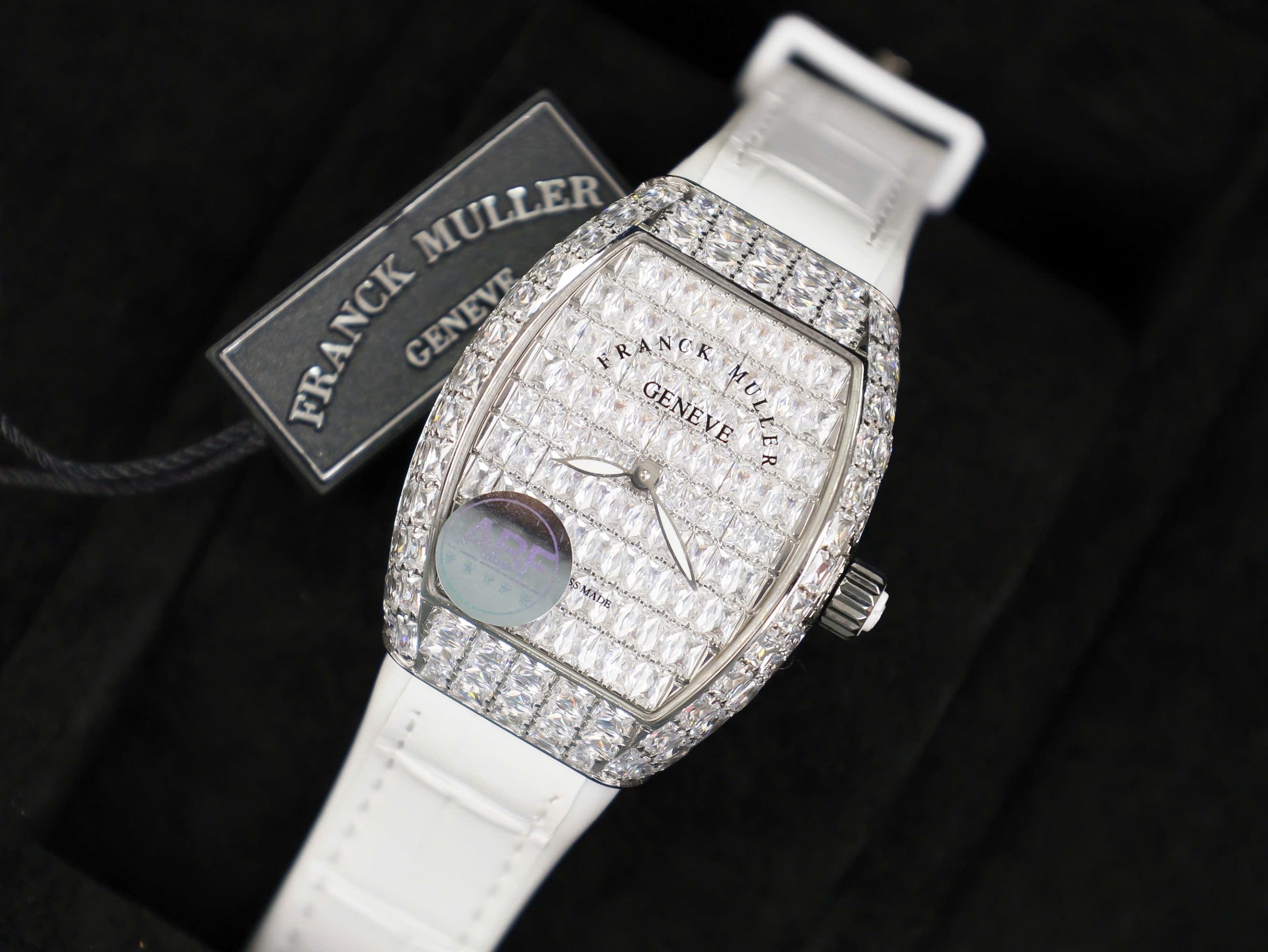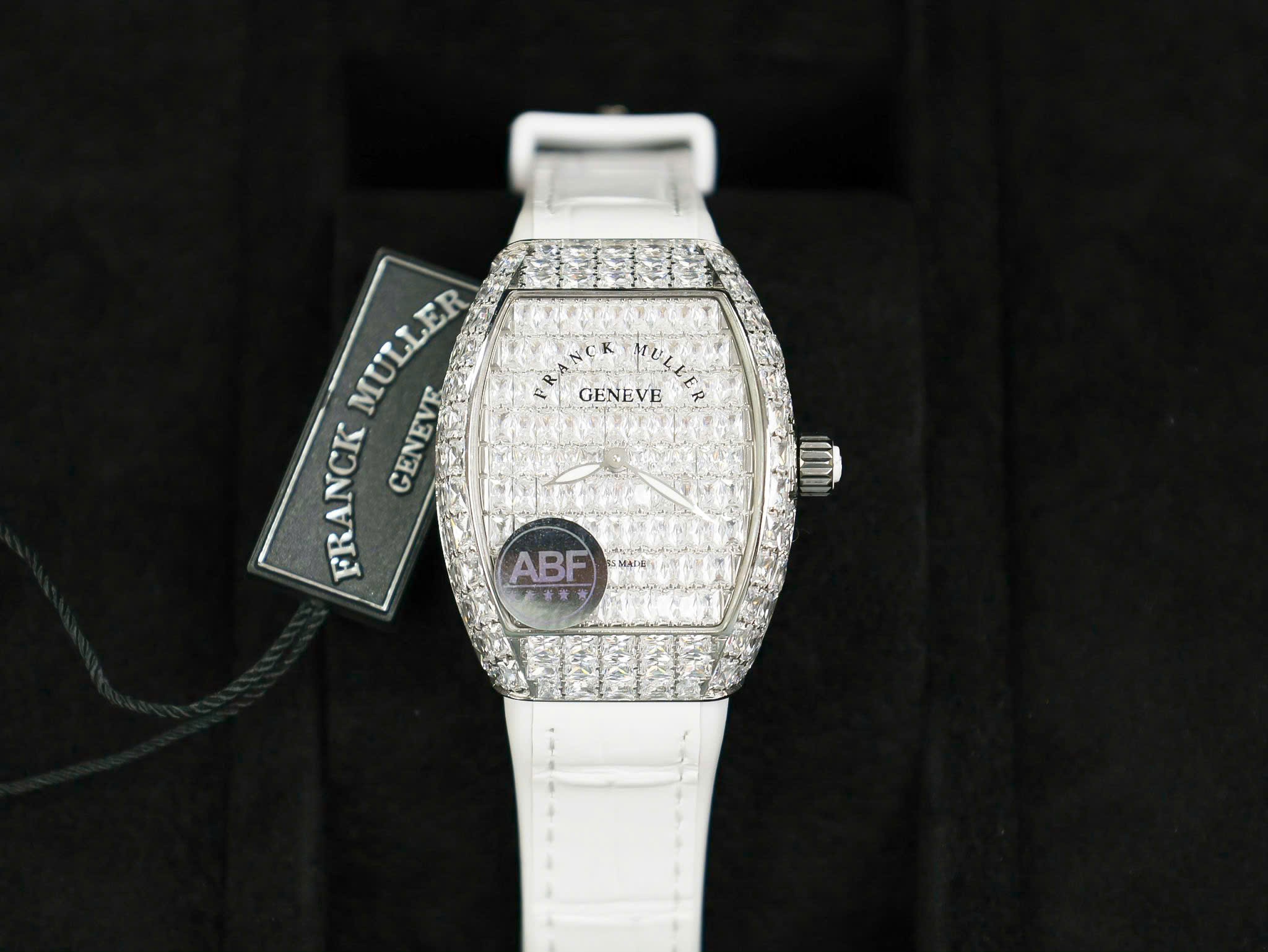 Franck Muller Vanguard V32 White Full Baguette Diamonds is available at DWatch Global.