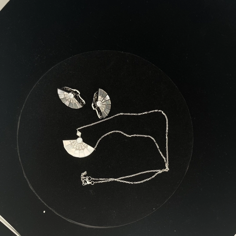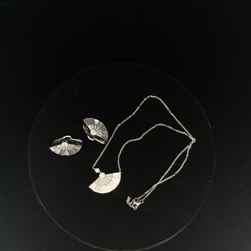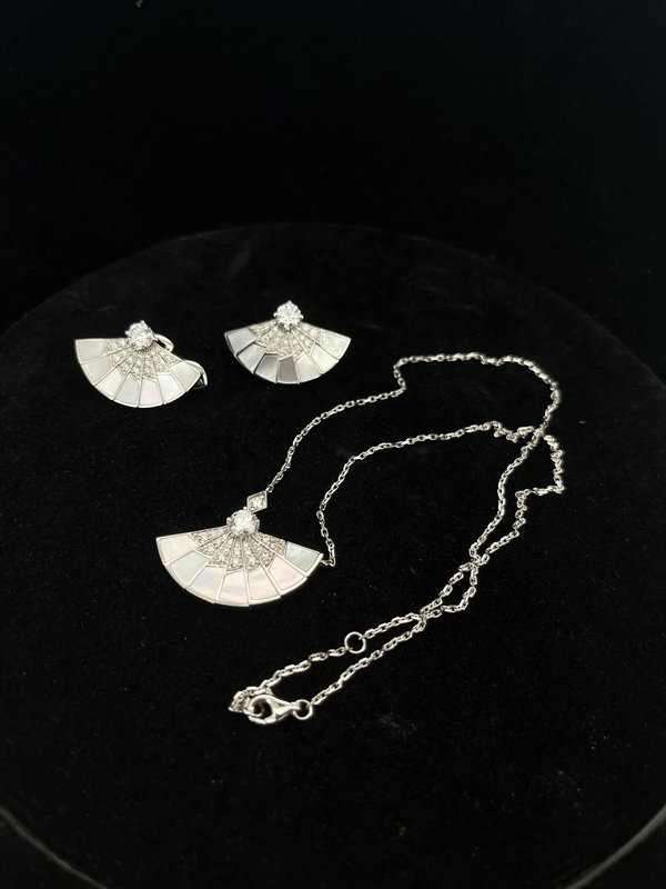 Garrard Necklace And Earrings Set Womens Custom Mother of Pearl 18K White Gold