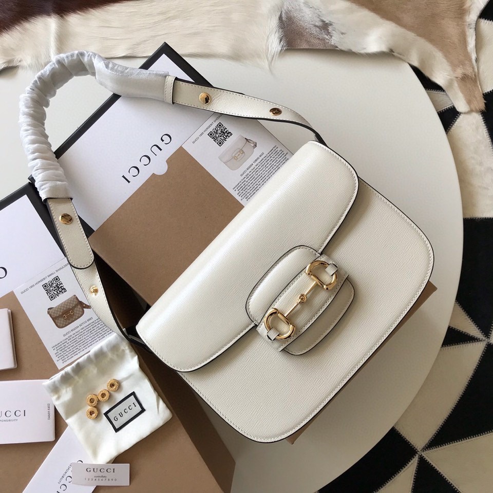 Gucci Horsebit 1955 Mini White Leather Replica Bags 25cm