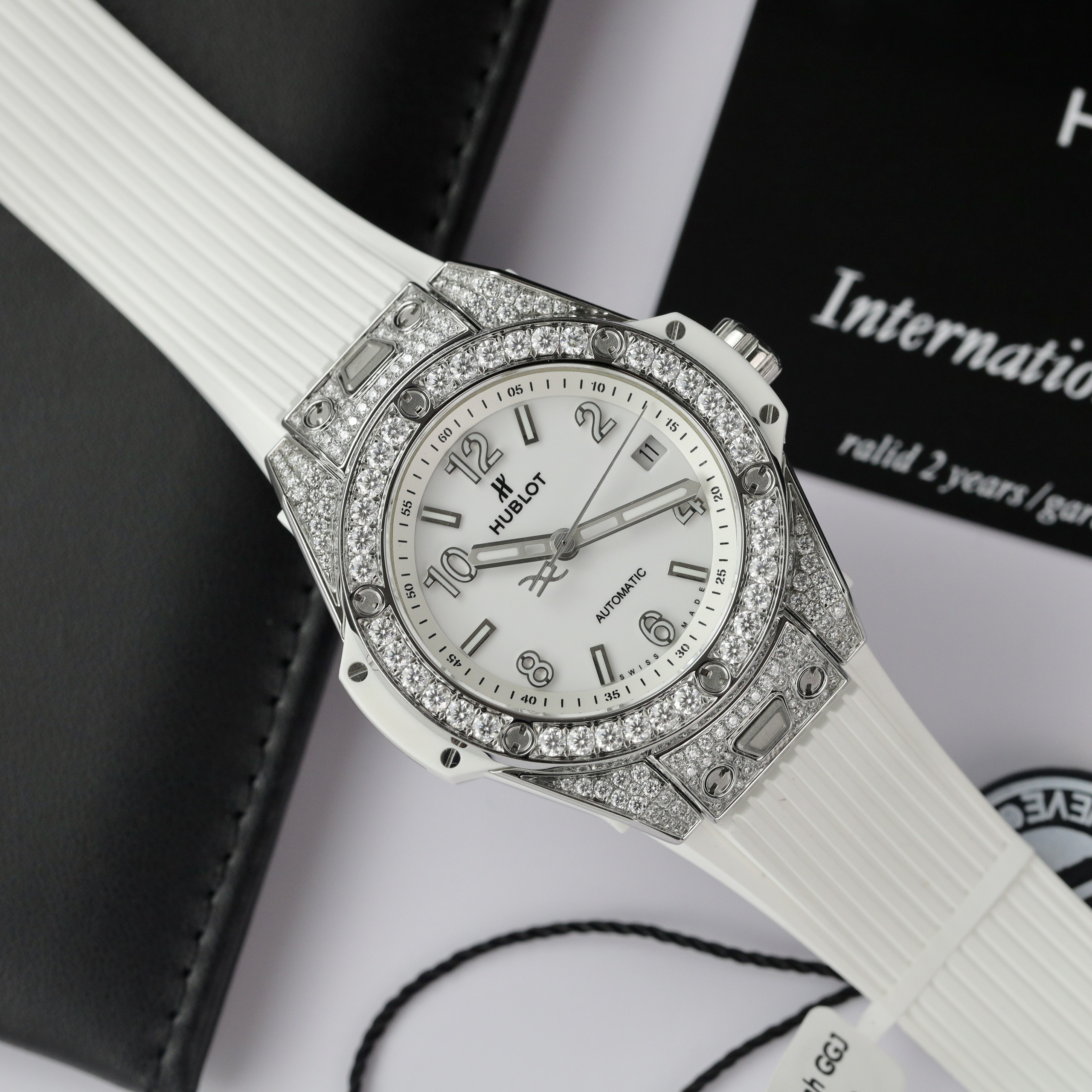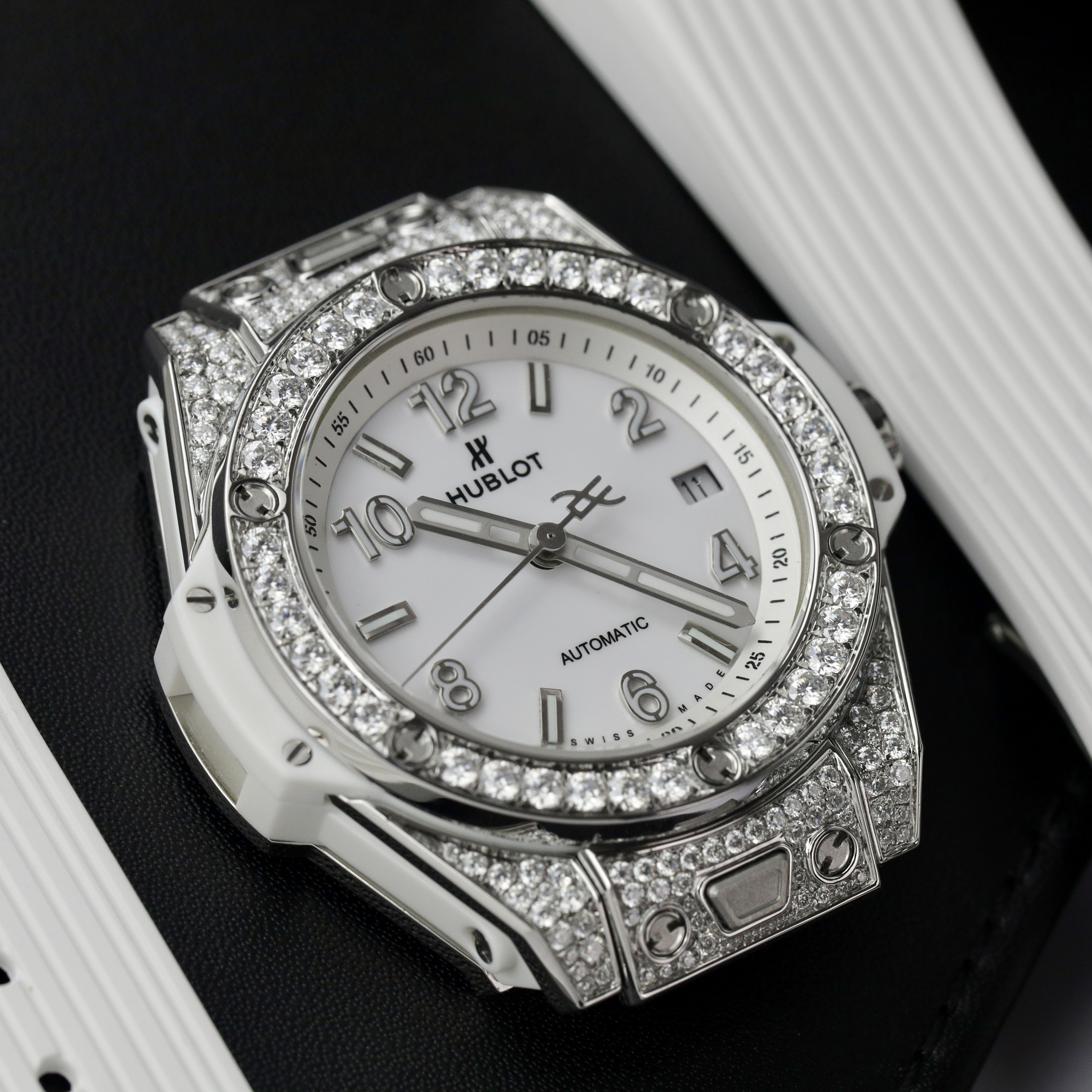Hublot Big Bang One Click Titanium Customs Full Moissanite Diamonds is available at DWatch Global.