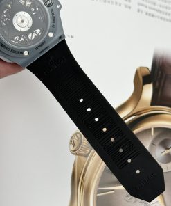 The case of the Hublot Big Bang Sang Bleu II Ceramic Gray Replica Watch BBF has a diameter of 45mm, with a masculine and powerful gray tone. The Sang Bleu design stands out with its sharp angles, intersecting lines, creating a complex and impressive appearance. With a water resistance of up to 100m, users can confidently engage in outdoor activities.