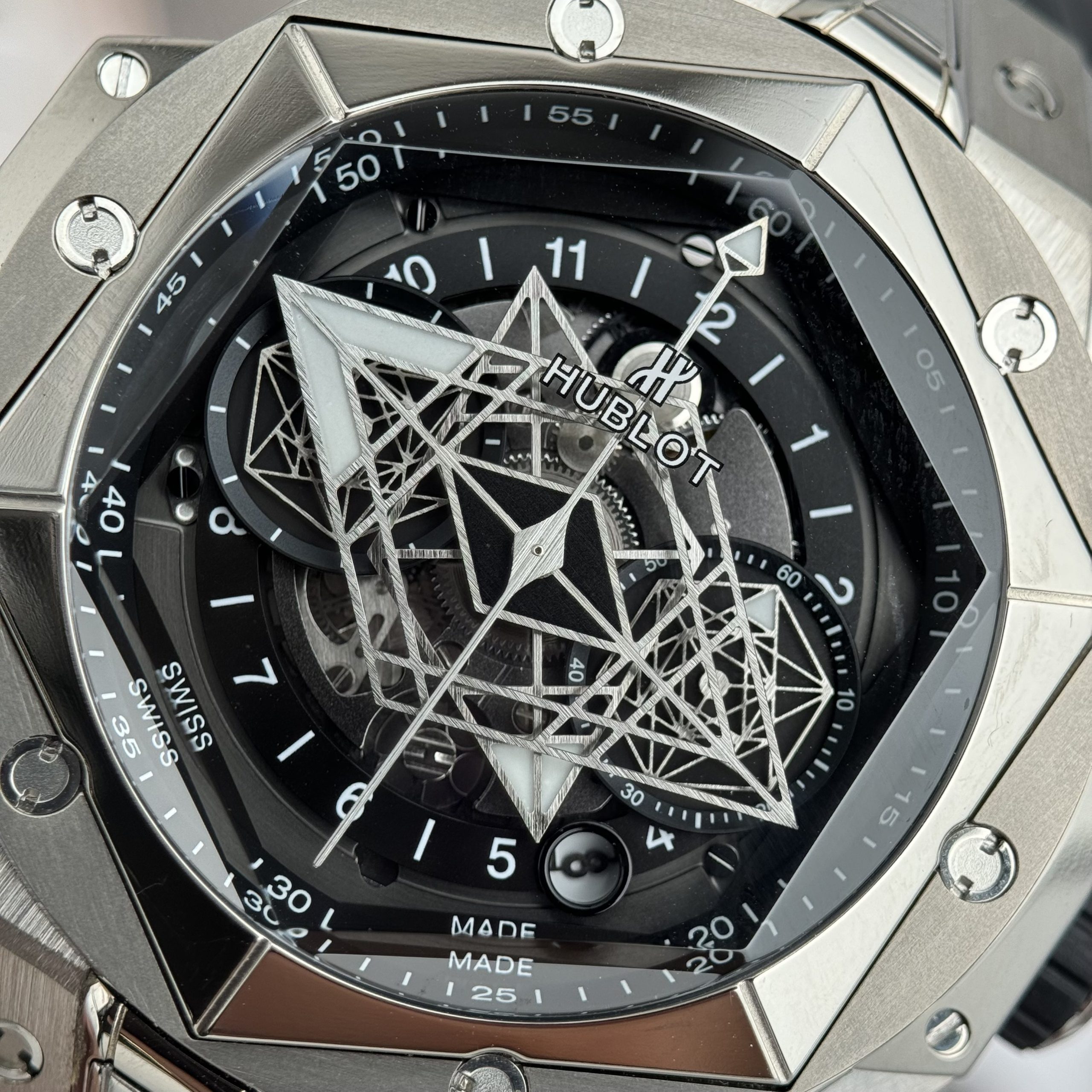 Breaking traditional rules, the Big Bang Sang Bleu II is not just a watch but also a statement of innovation and creativity. Particularly, the innovative approach to time reading using a hexagonal-shaped Rhodium-plated disc is a significant step forward in the global watchmaking industry.