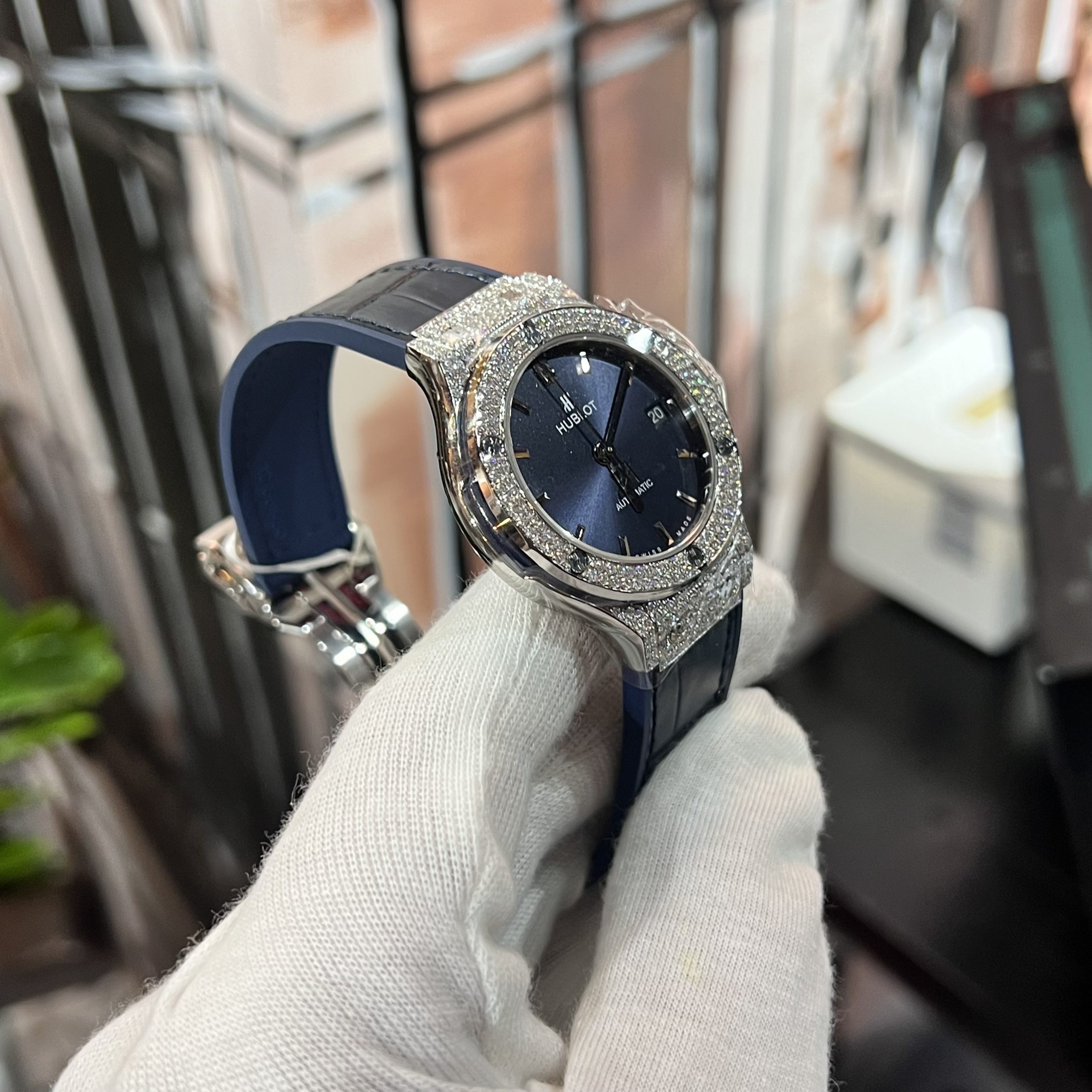 Hublot Classic Fusion Custom Diamonds Moissanite Blue Color 38mm