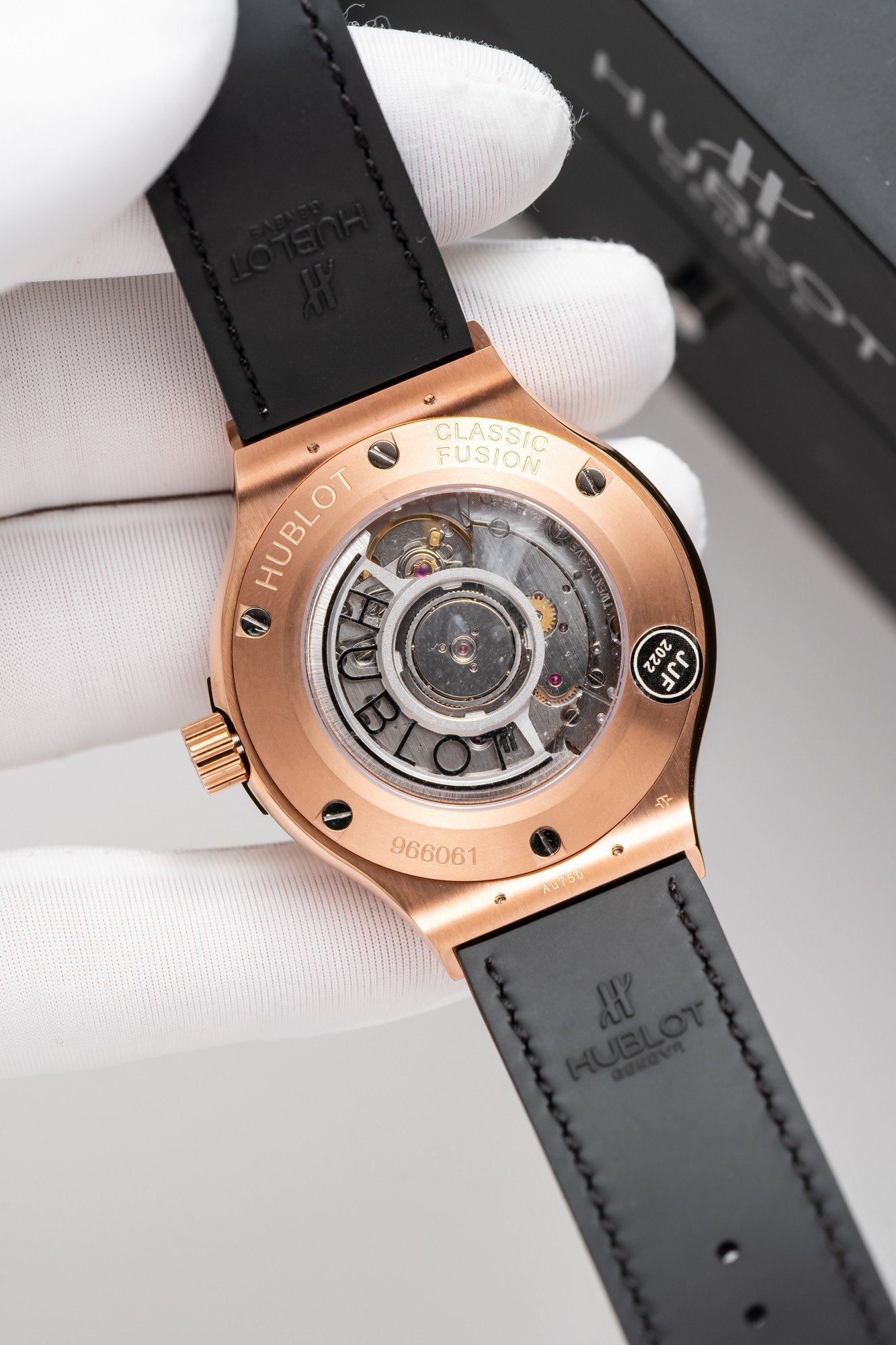 Powering the Hublot Classic Fusion Automatic 38mm, with functions for hours, minutes, seconds, and date display for about 42 hours, is the automatic ETA 2892 movement, operating at a frequency of 28,800 vibrations per hour.