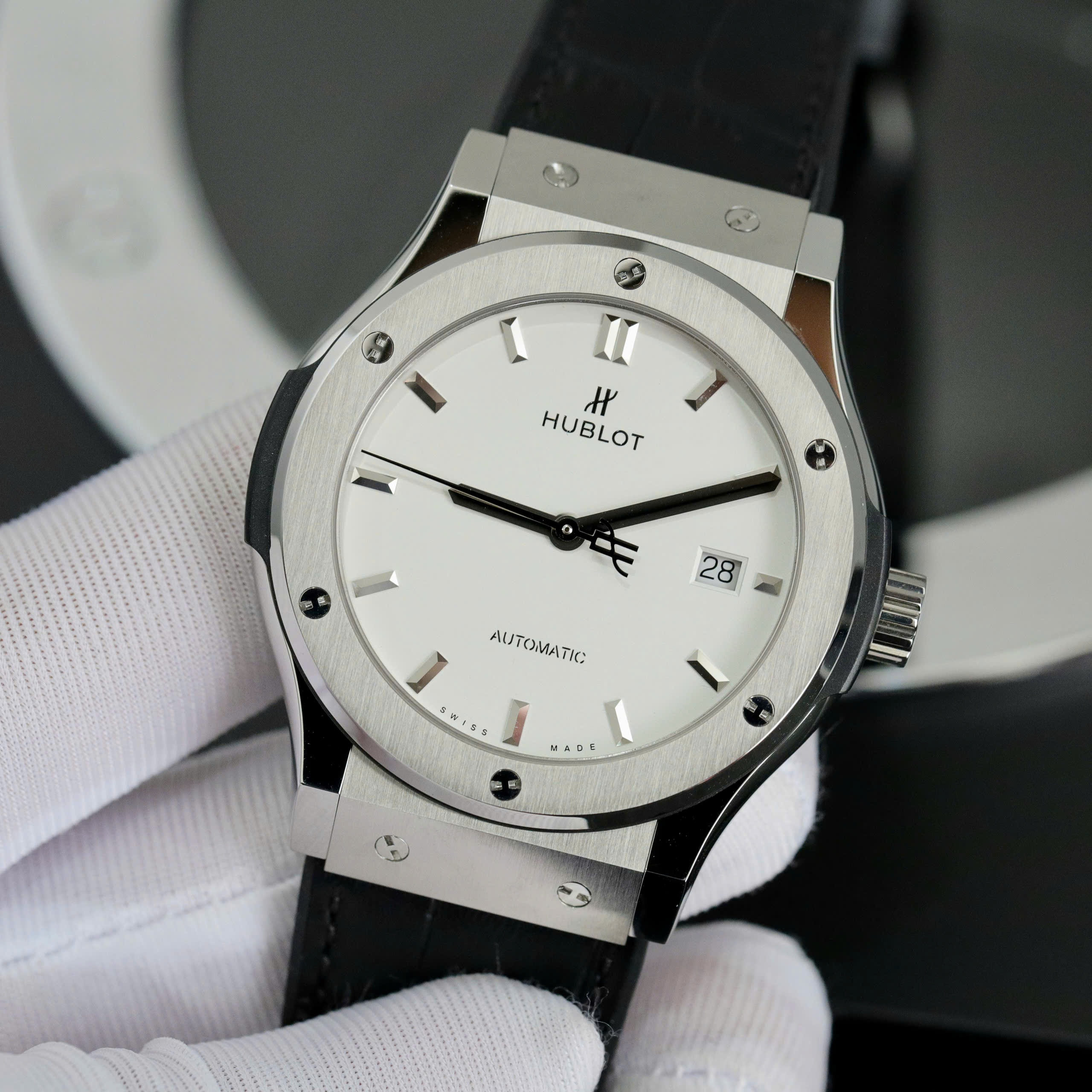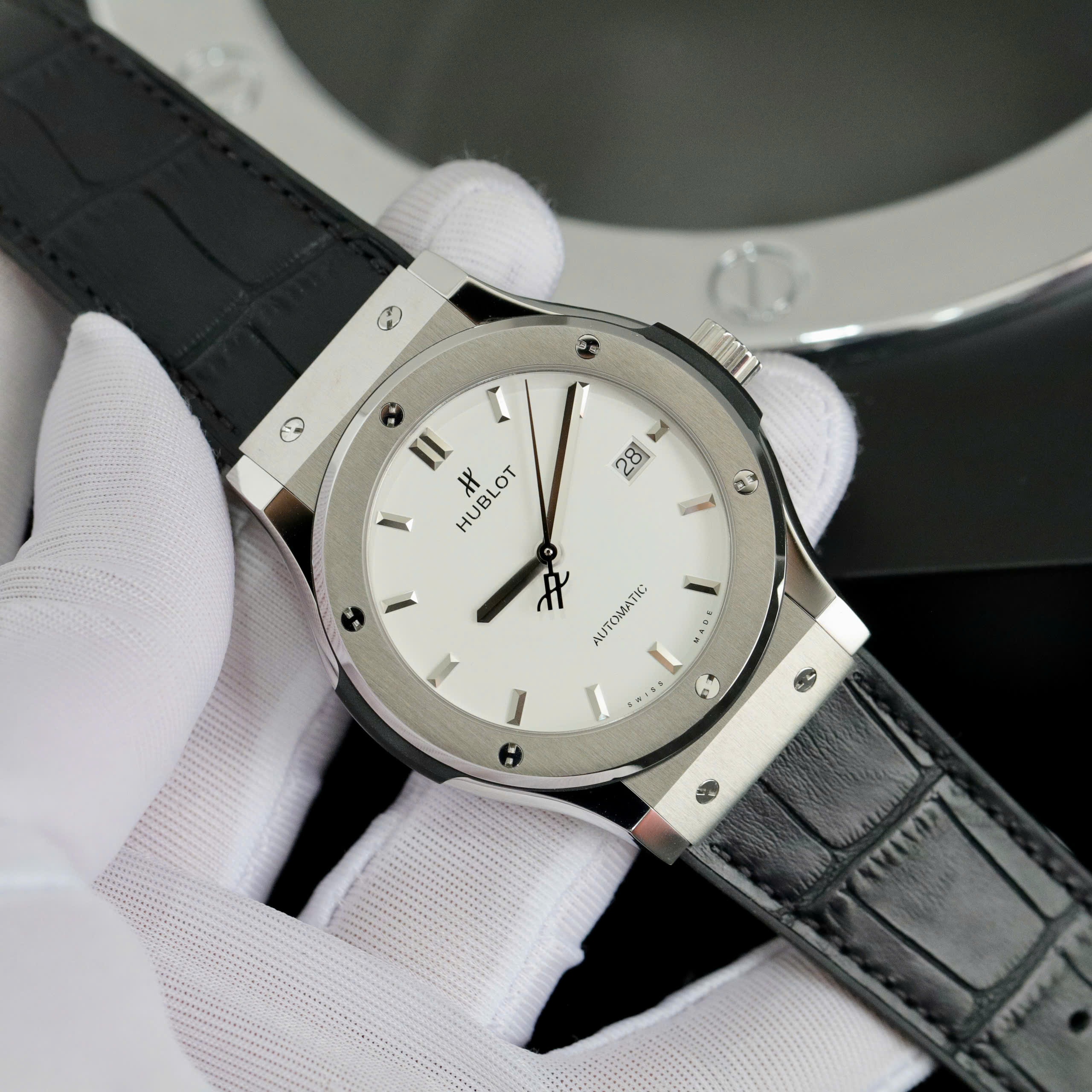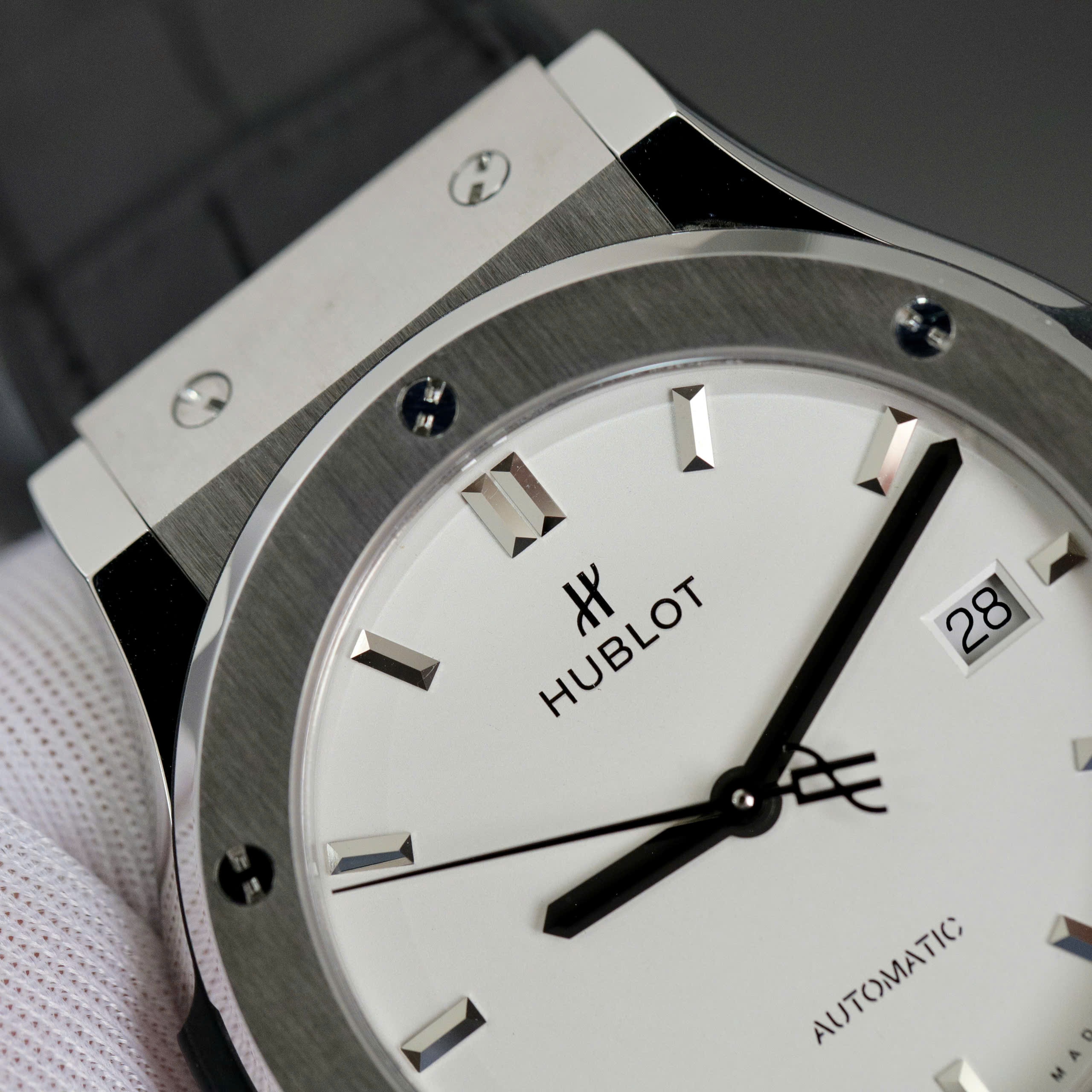 Hublot Classic Fusion Titanium Replica Watches JJF Factory White Dial is available at DWatch Global.