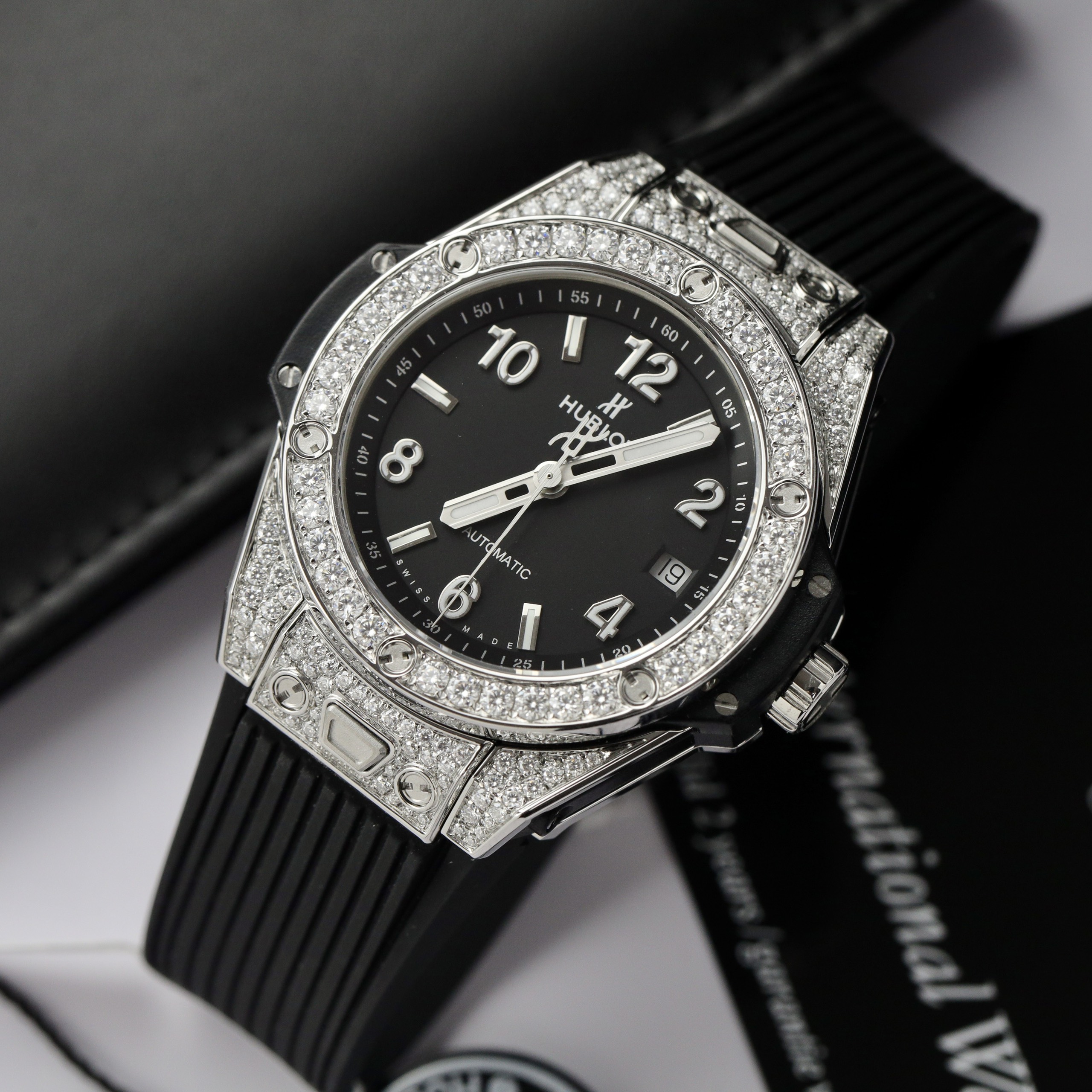 Hublot Customs Moissanite Diamonds Big Bang One Click Titanium is available at DWatch Global.
