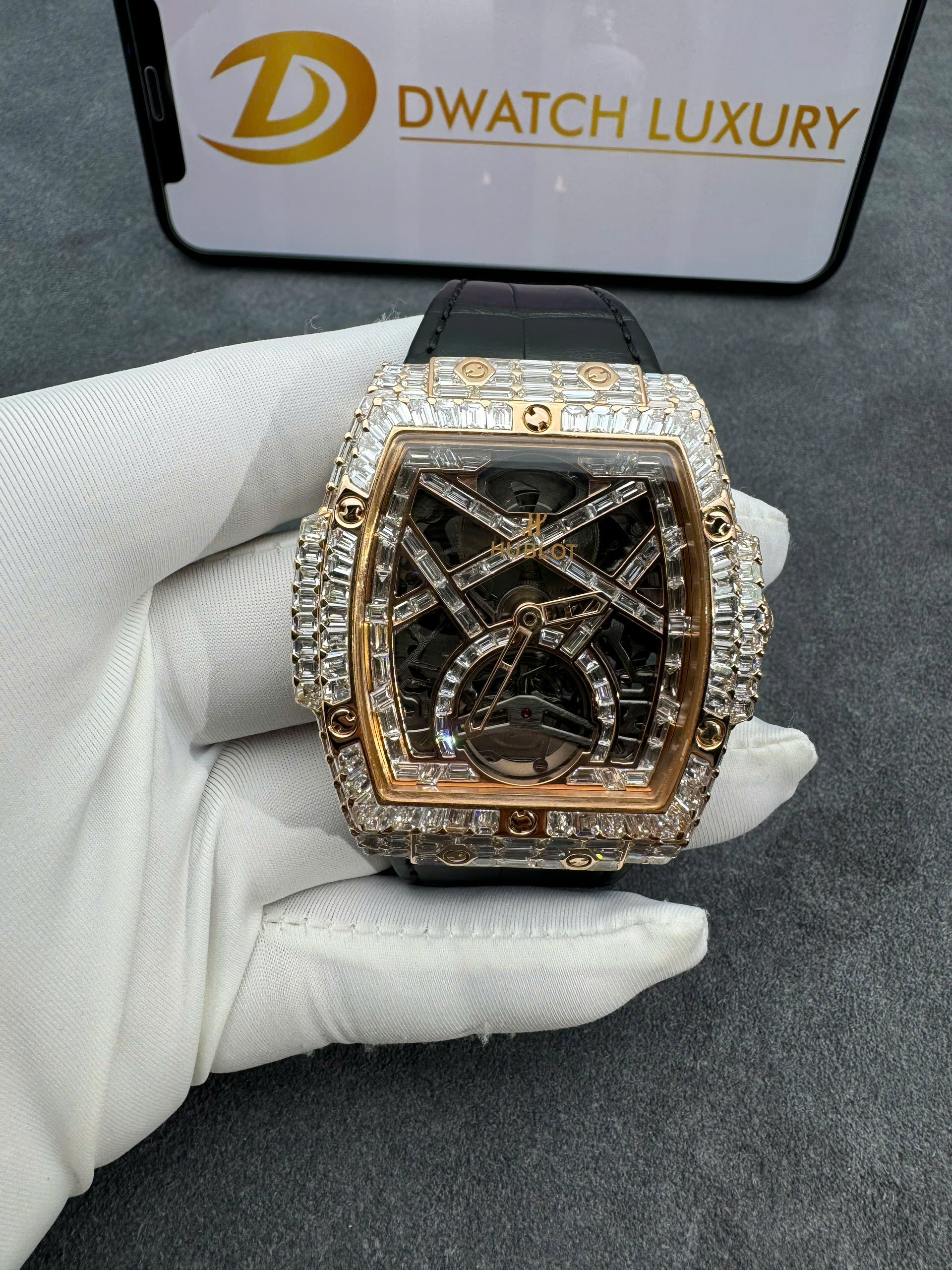 Hublot MP-06 Tourbillon Real Gold 18K Full Diamonds Baguette is available at DWatch Global.