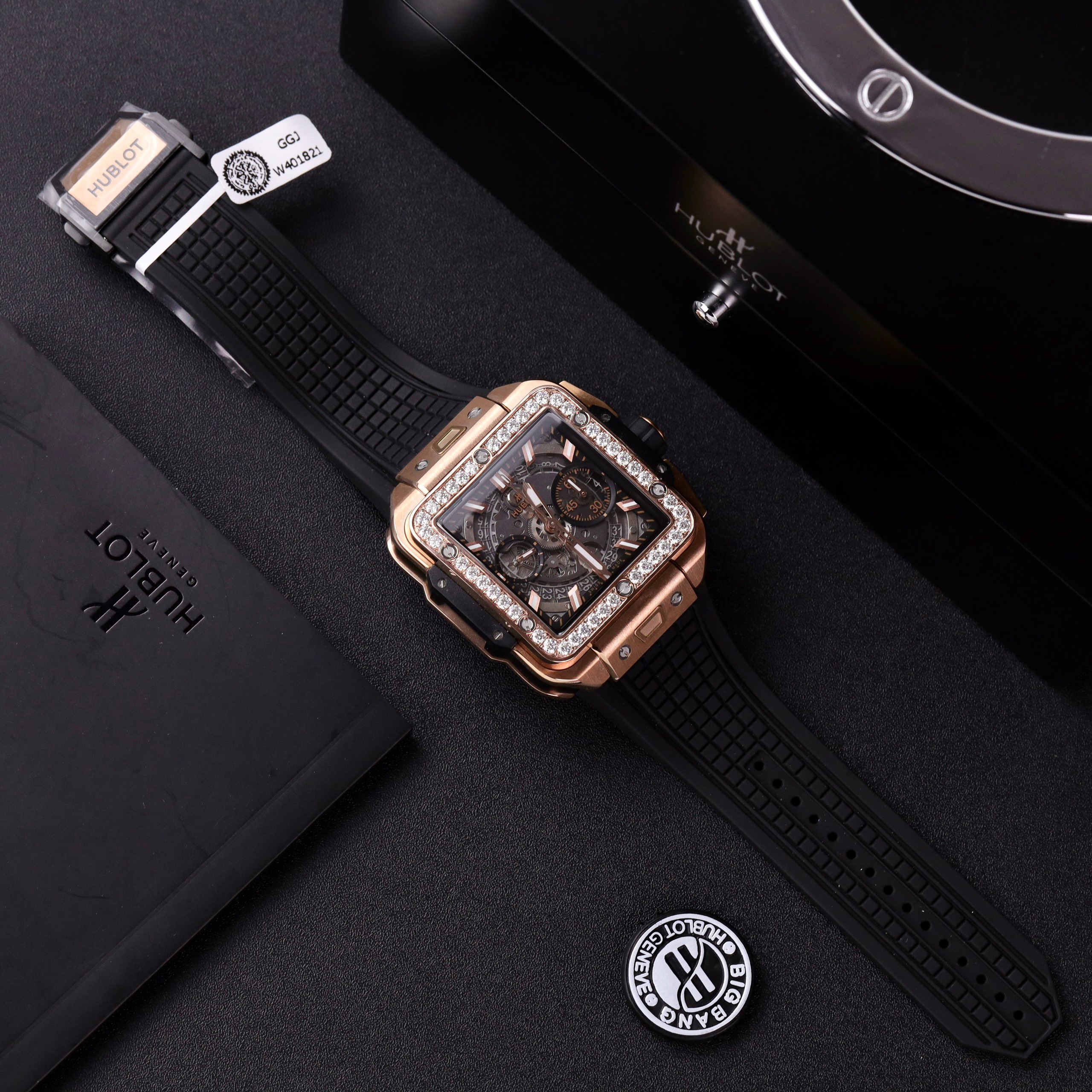 Hour, Minute. Water resistance: The Hublot Square Bang King Gold Replica 1:1 has a water resistance of up to 100m, allowing you to confidently use it in water environments such as rain or hand washing.
