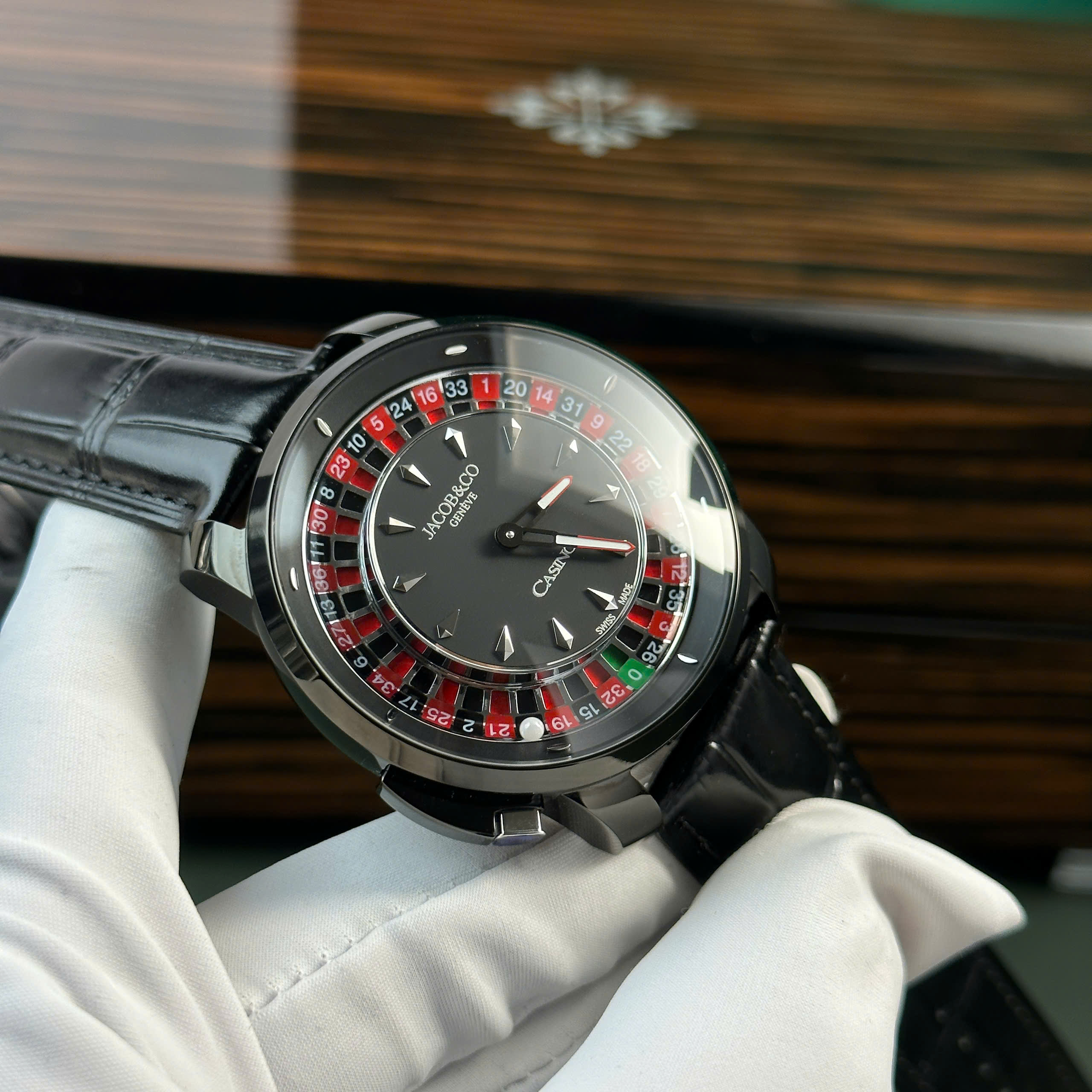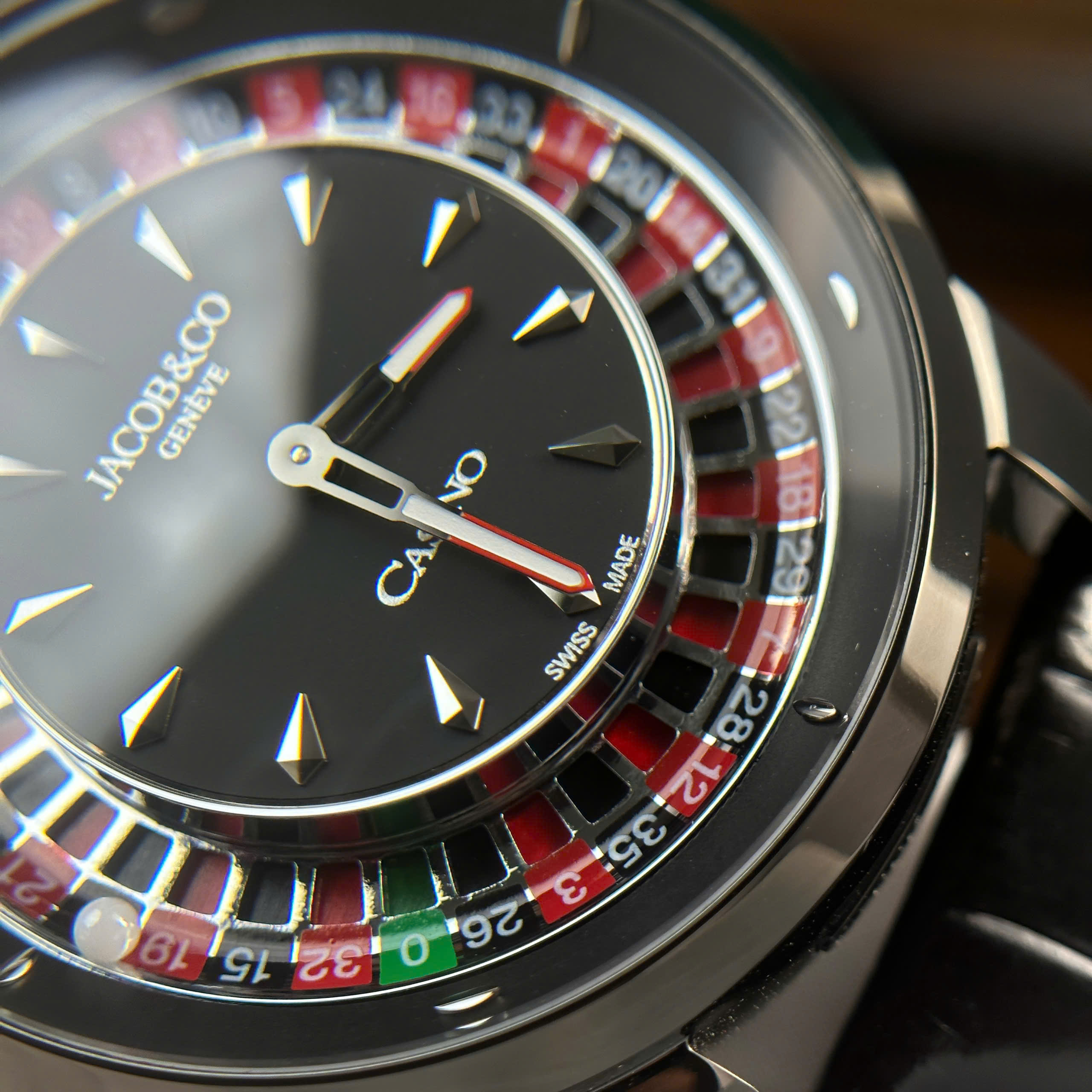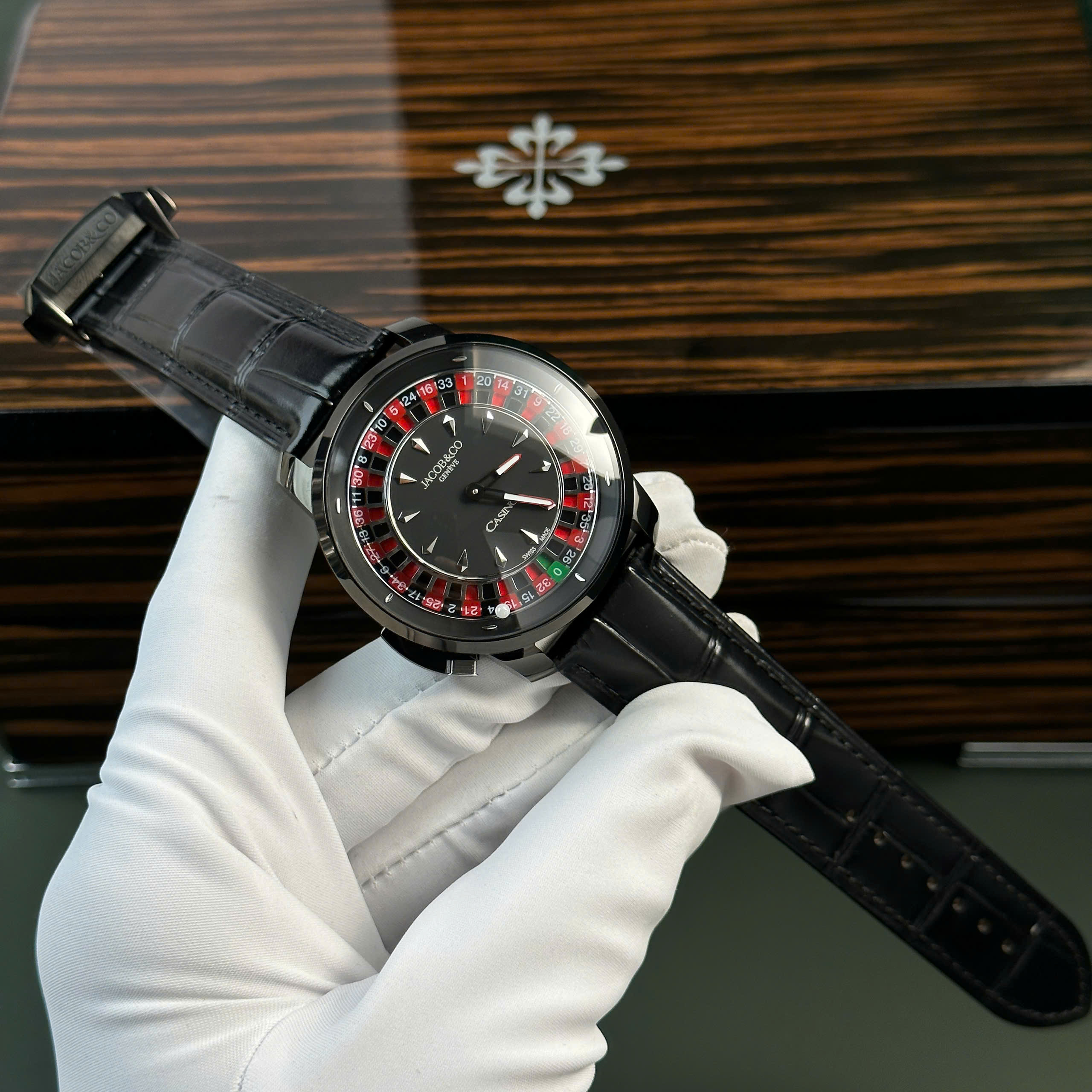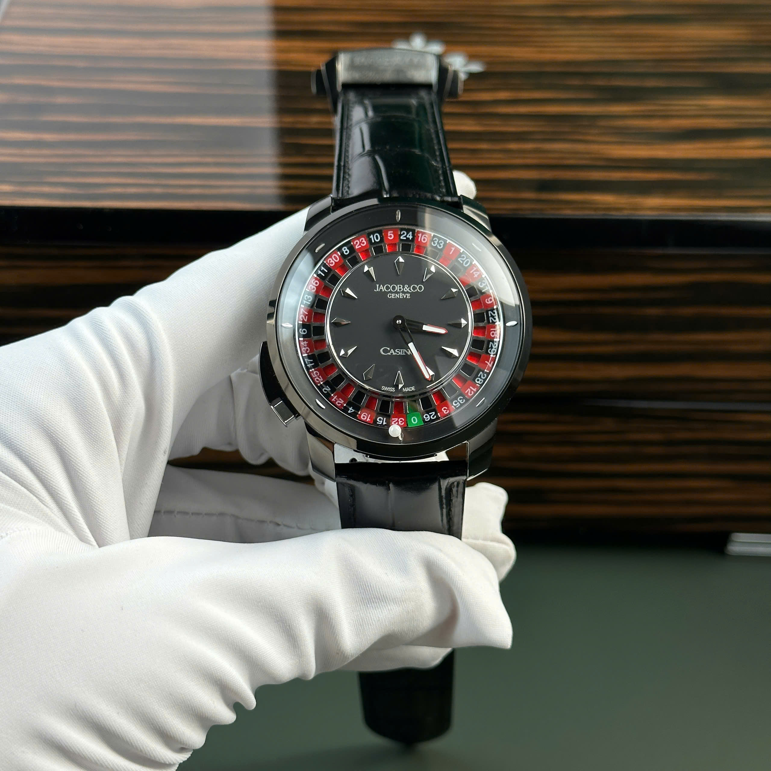 Jacob & Co Casino Roulette Replica Watch Black Leather Strap 44mm