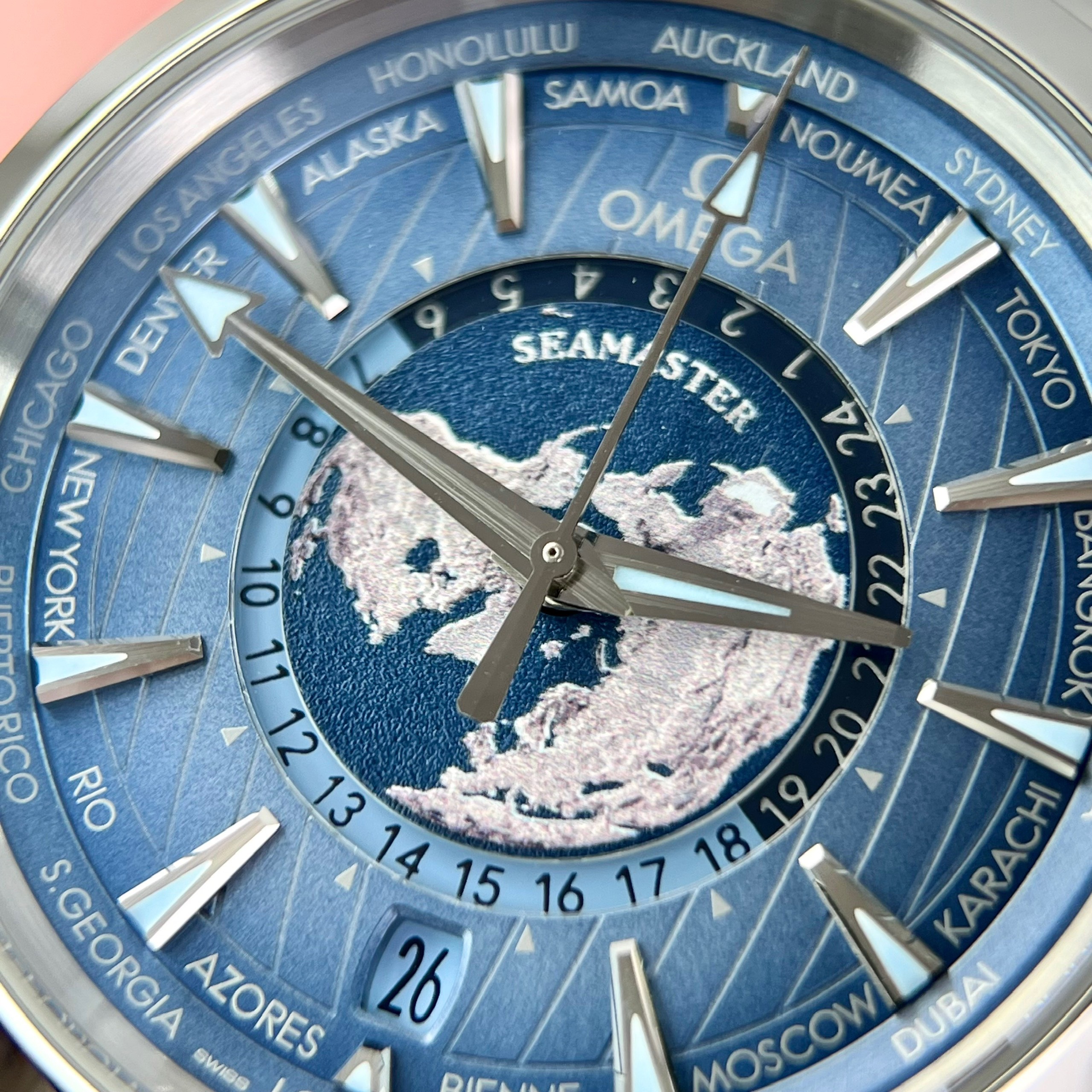 Omega Aqua Terra Worldtimer Summer Blue VS Factory is available at DWatch Global.