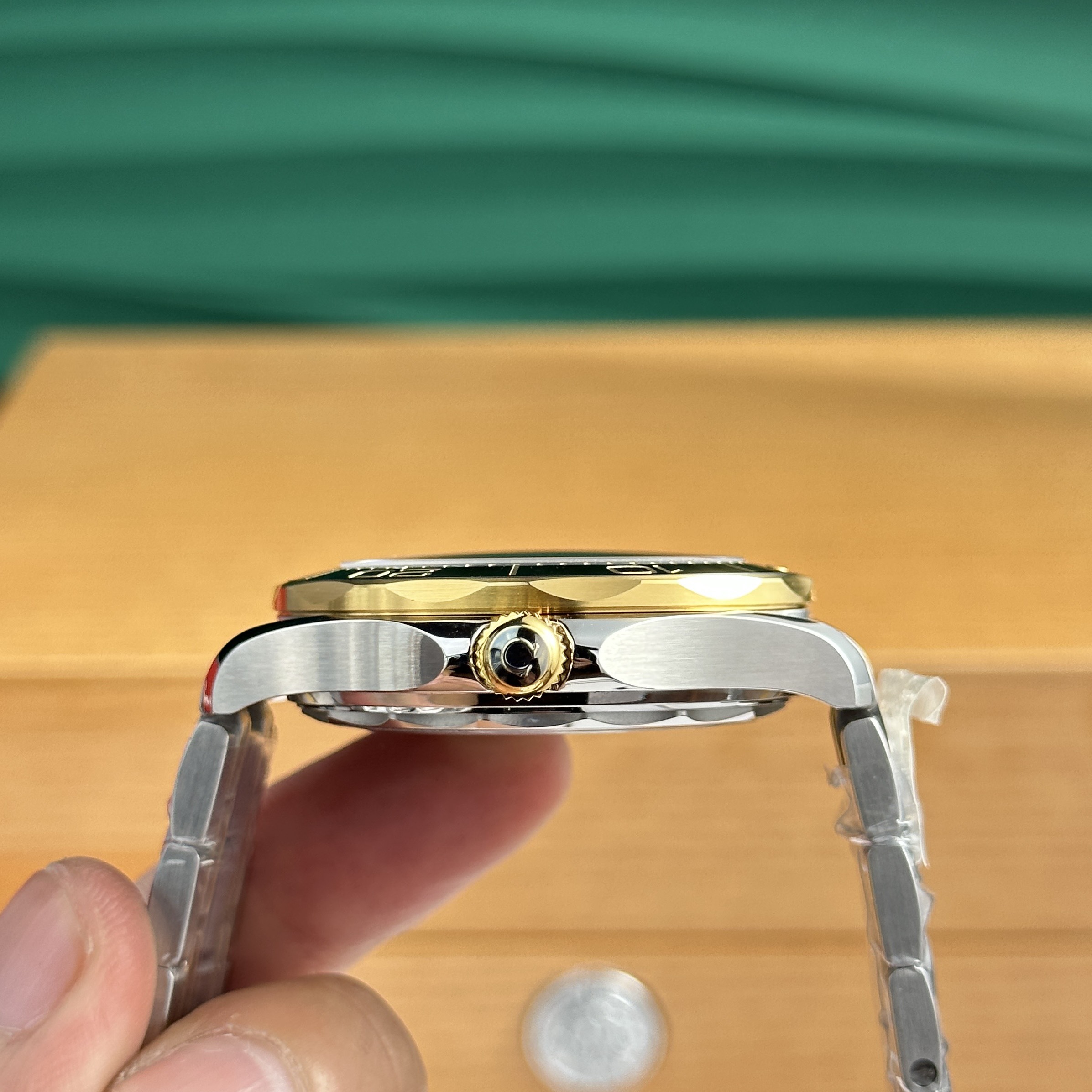 The bezel, crafted from pure 18K gold, is intricately designed and meticulously processed to exude robustness and sturdiness when observed as part of the watch’s overall design. Furthermore, when carefully set on the stainless steel case, the bezel elevates the aesthetic appeal to nearly perfection.