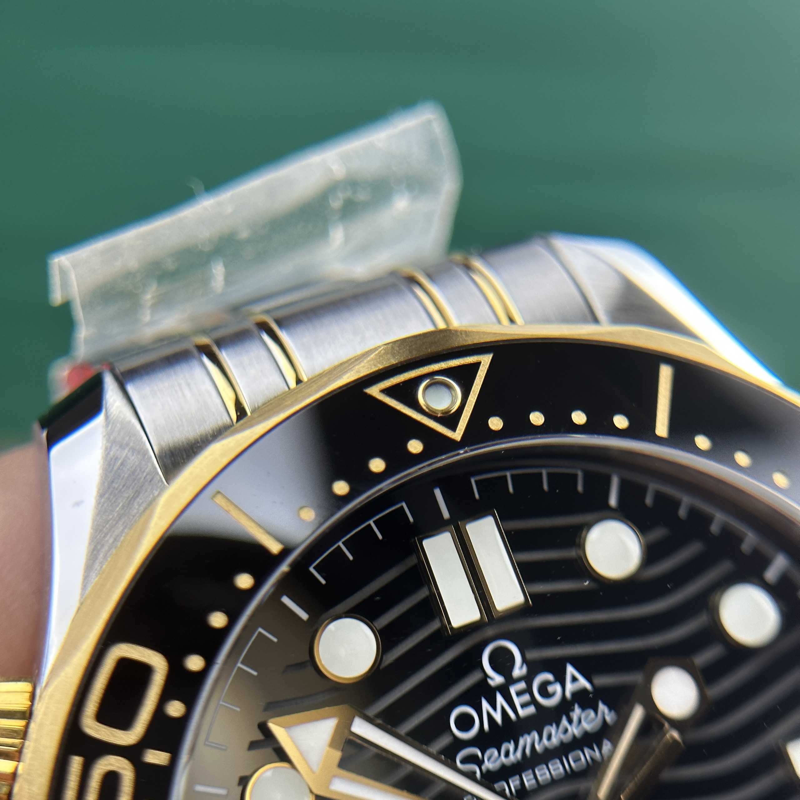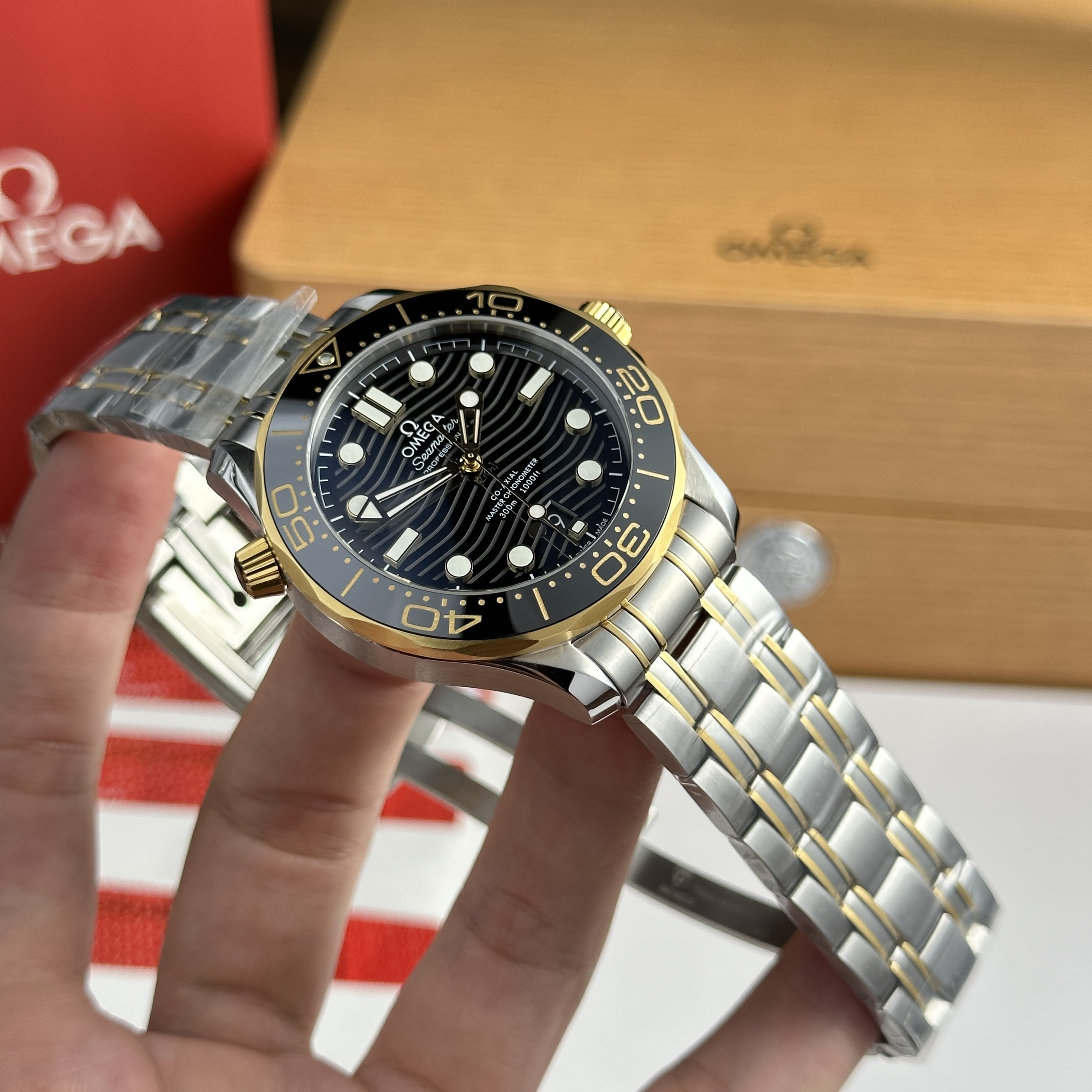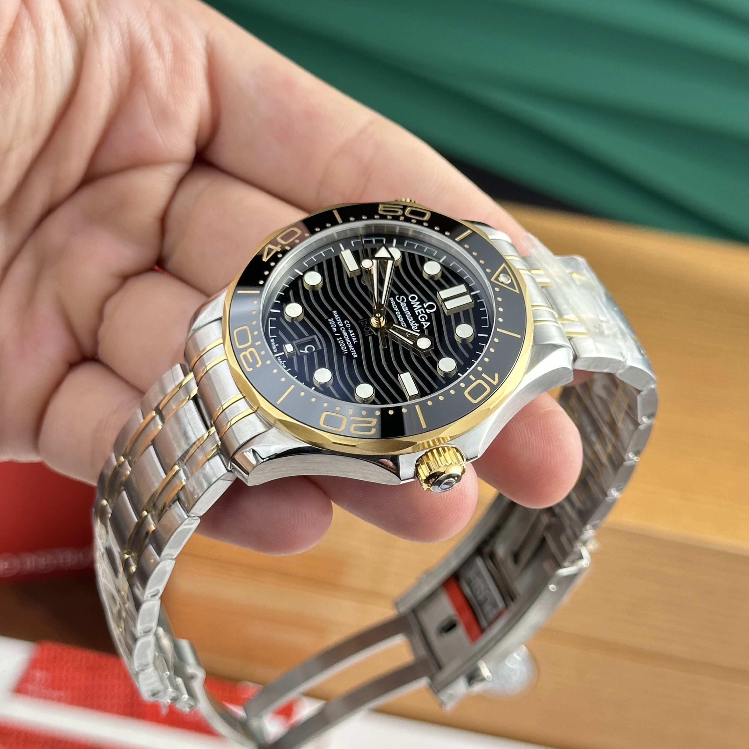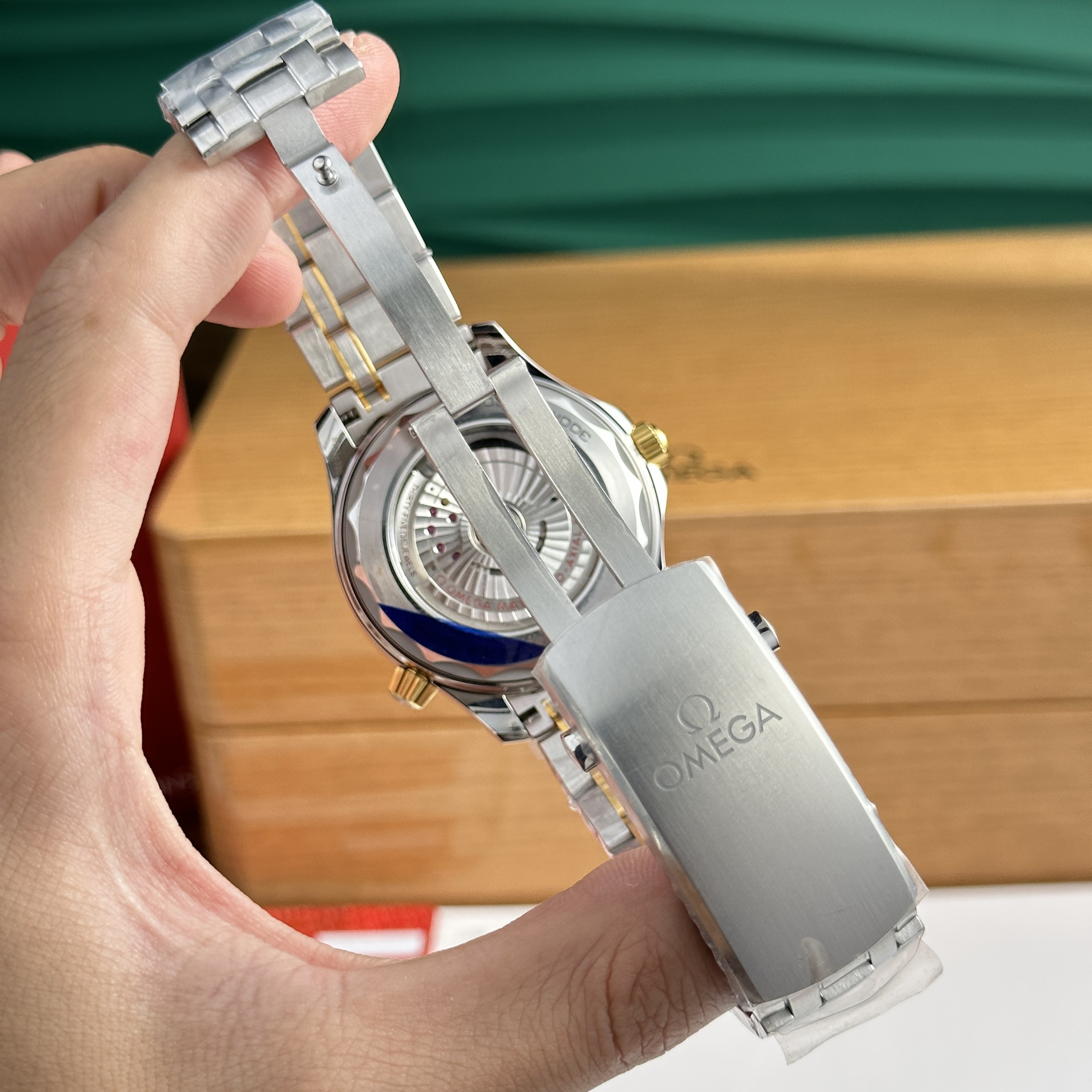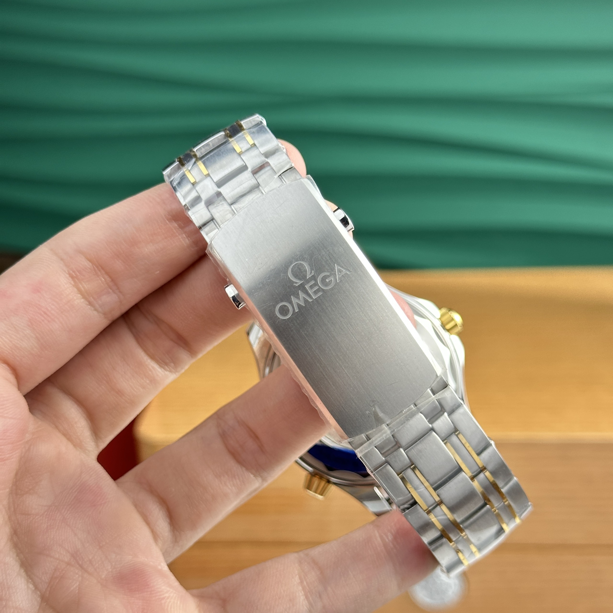 The watch’s bracelet has been expertly crafted and finished by Swiss artisans, known for their meticulous workmanship, using a combination of stainless steel and 18K gold. These two materials make the bracelet of the Omega Seamaster DIVER 300M 210.20.42.20.01.002 Replica 1:1 robust and durable.