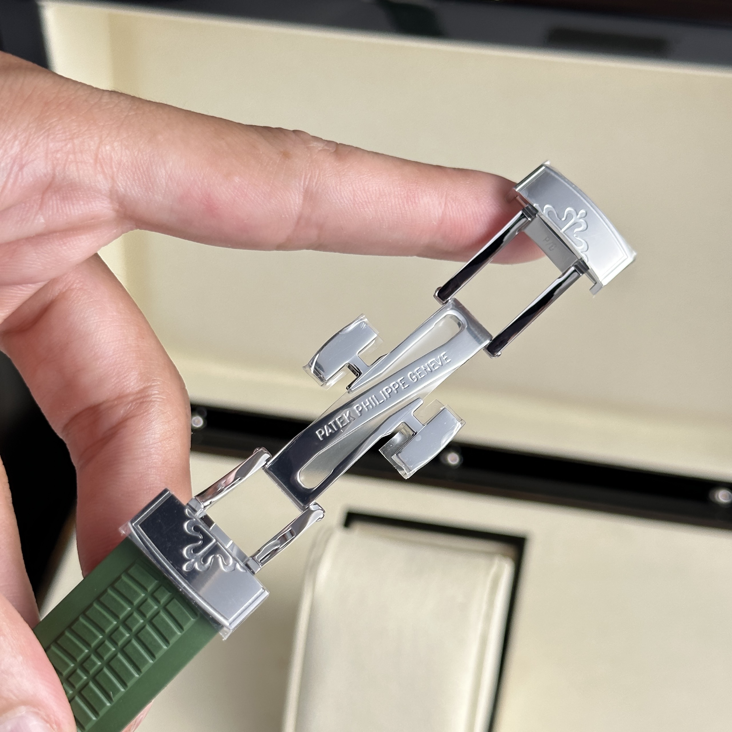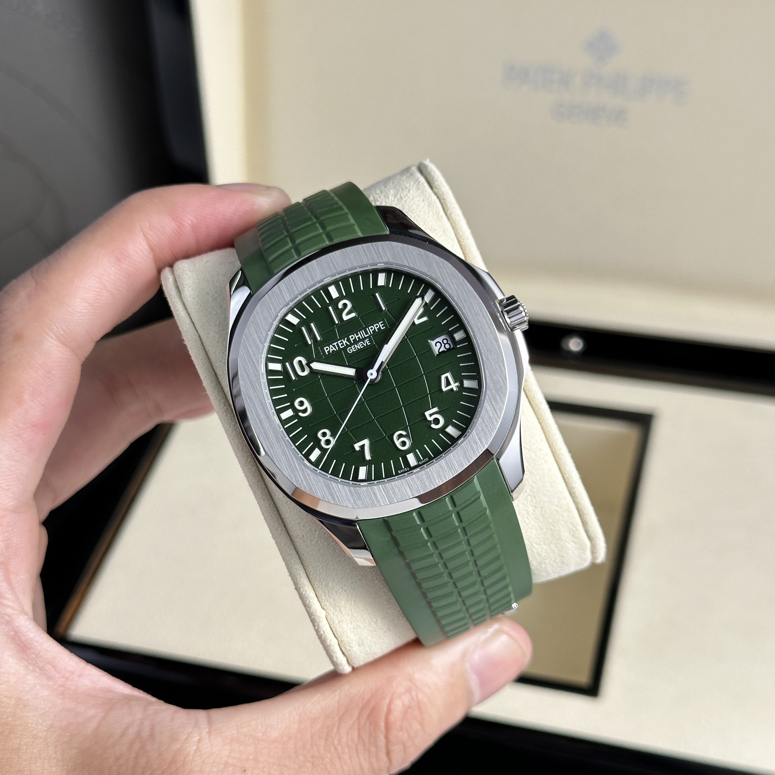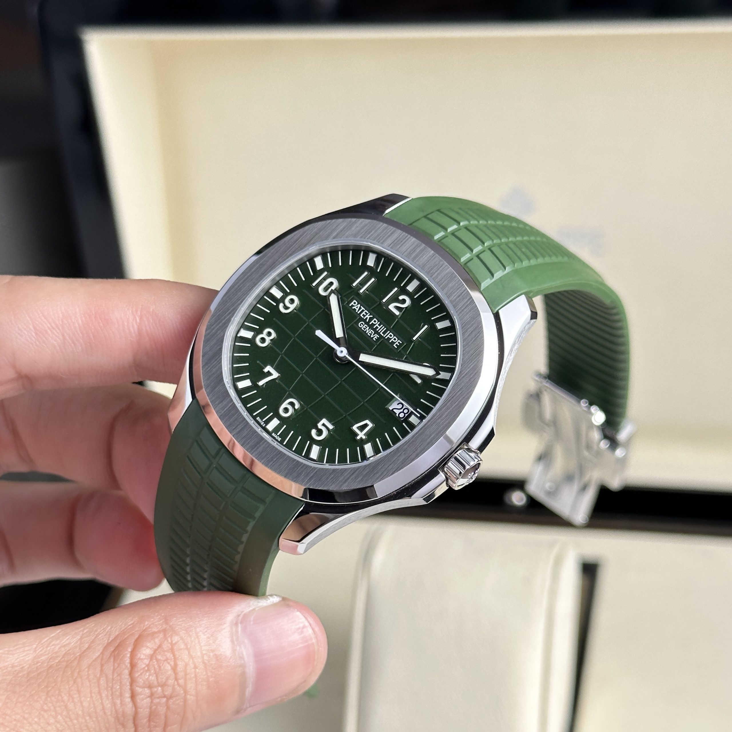 The Patek Philippe Aquanaut 5168G Green Best Replica 3K Factory 2024 measuring 42.2mm, is currently available at DWatch Global.
