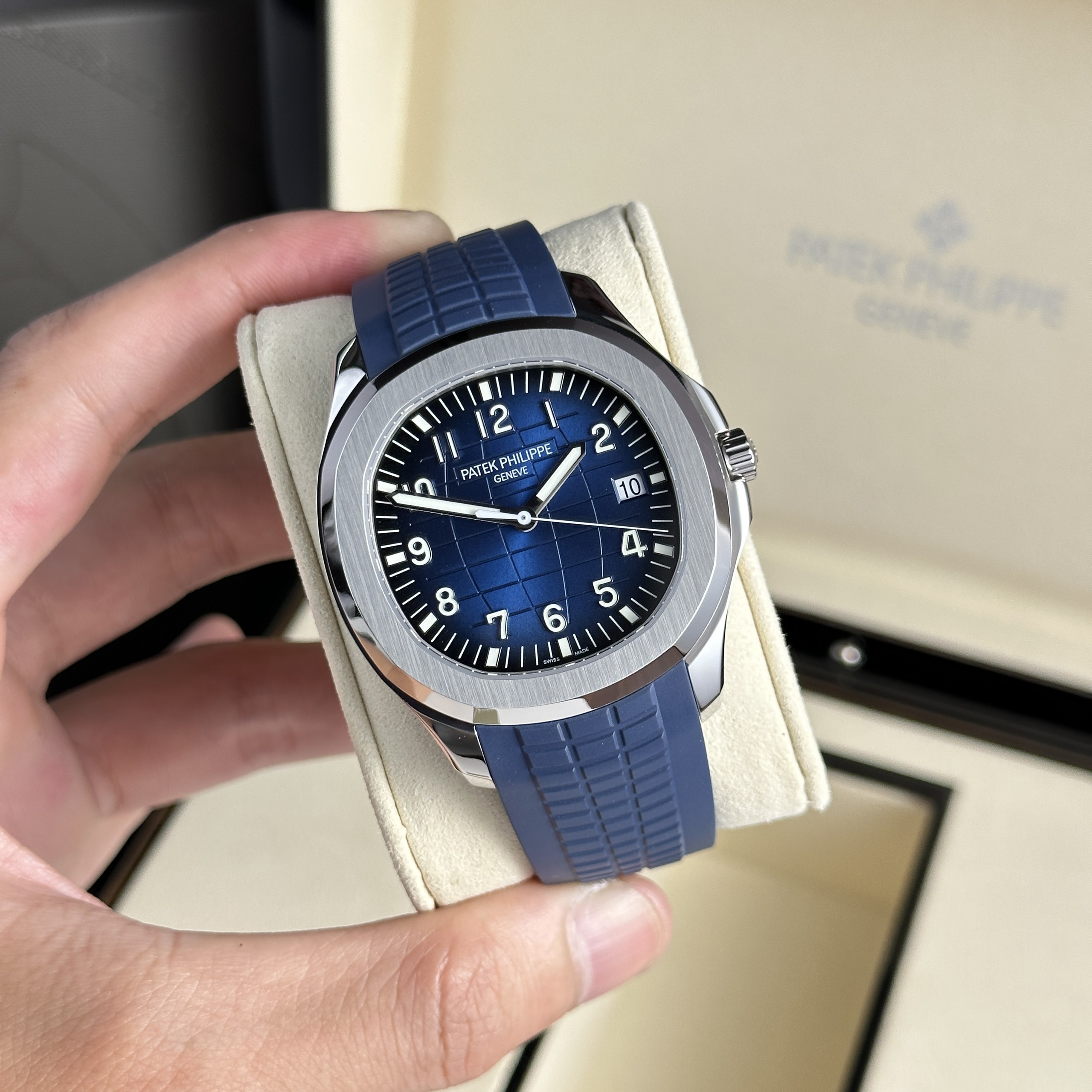 Patek Philippe Aquanaut 5168G Replica Watches Blue Rubber is available at DWatch Global.