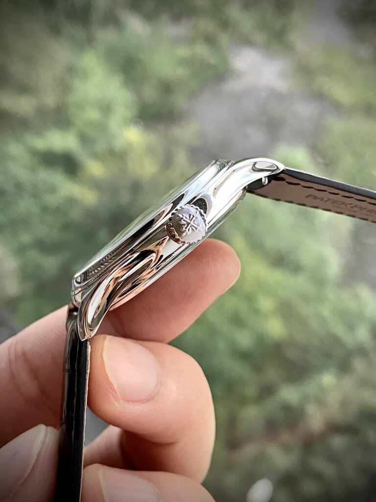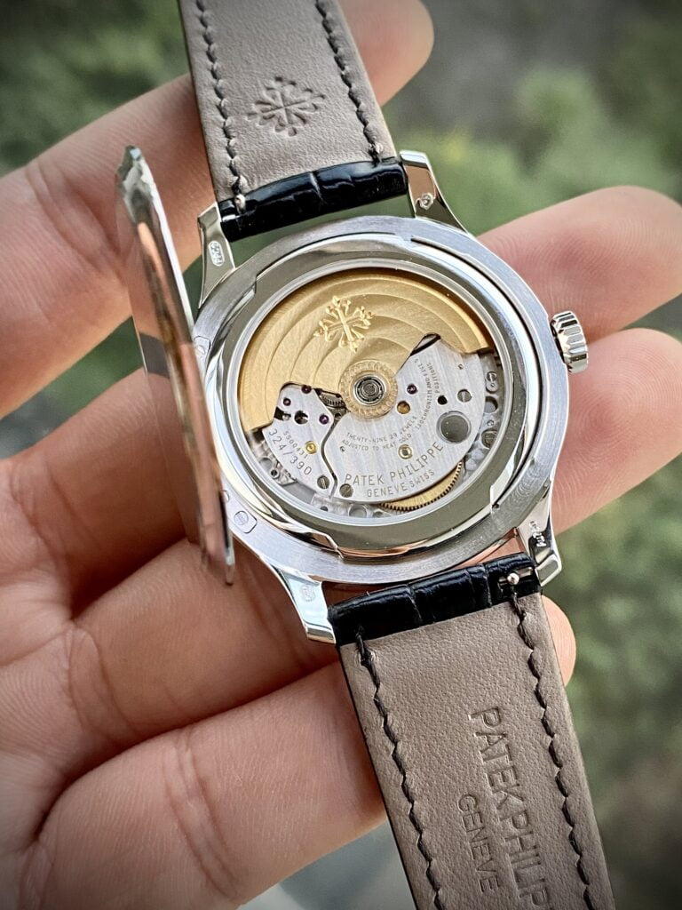 The Patek Philippe Caliber 324 S C movement, with a diameter of 27mm, comprises 213 movement parts, and 29 jewels. It boasts a power reserve of 35 to 45 hours. Notable features include a gold rotor, operating at a frequency of 28,800 vibrations per hour. It incorporates a Gyromax balance wheel, Spiromax hairspring, and bears the Patek Philippe Seal. All of these components have been meticulously replicated by expert watchmakers to ensure the highest quality in the Patek Philippe Calatrava 5227G Mechanical Ivory Dial Best Replica watch!
