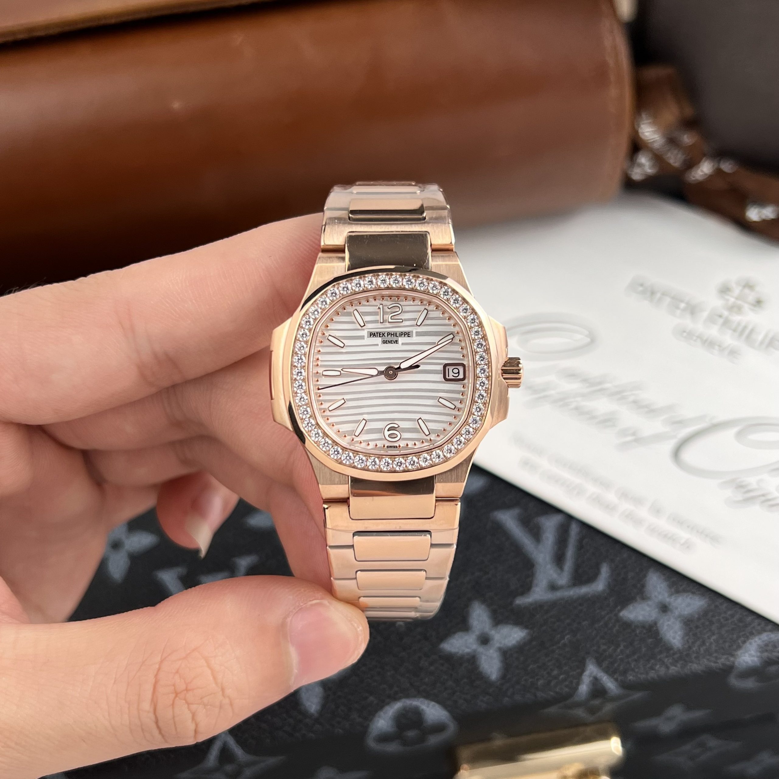 Externally, the original designs of the Nautilus series are preserved in the Replica Patek Philippe watch, but with more feminine details. With a case size of 32mm, this Replica watches is perfectly suited for women’s wrists. The case is made of premium steel plated with rose gold and meticulously polished, making the 7010/1R-011 stand out in any situation. Especially when wearing this Replica watch, you won’t feel the heaviness of the metal; instead, it offers a strong yet light sensation.
