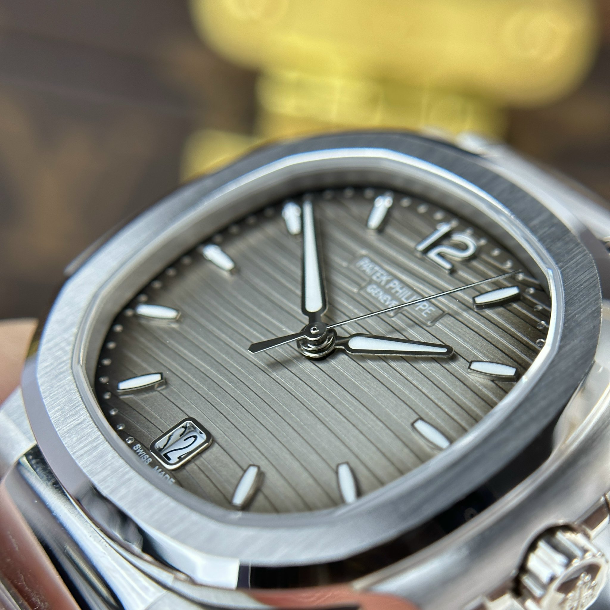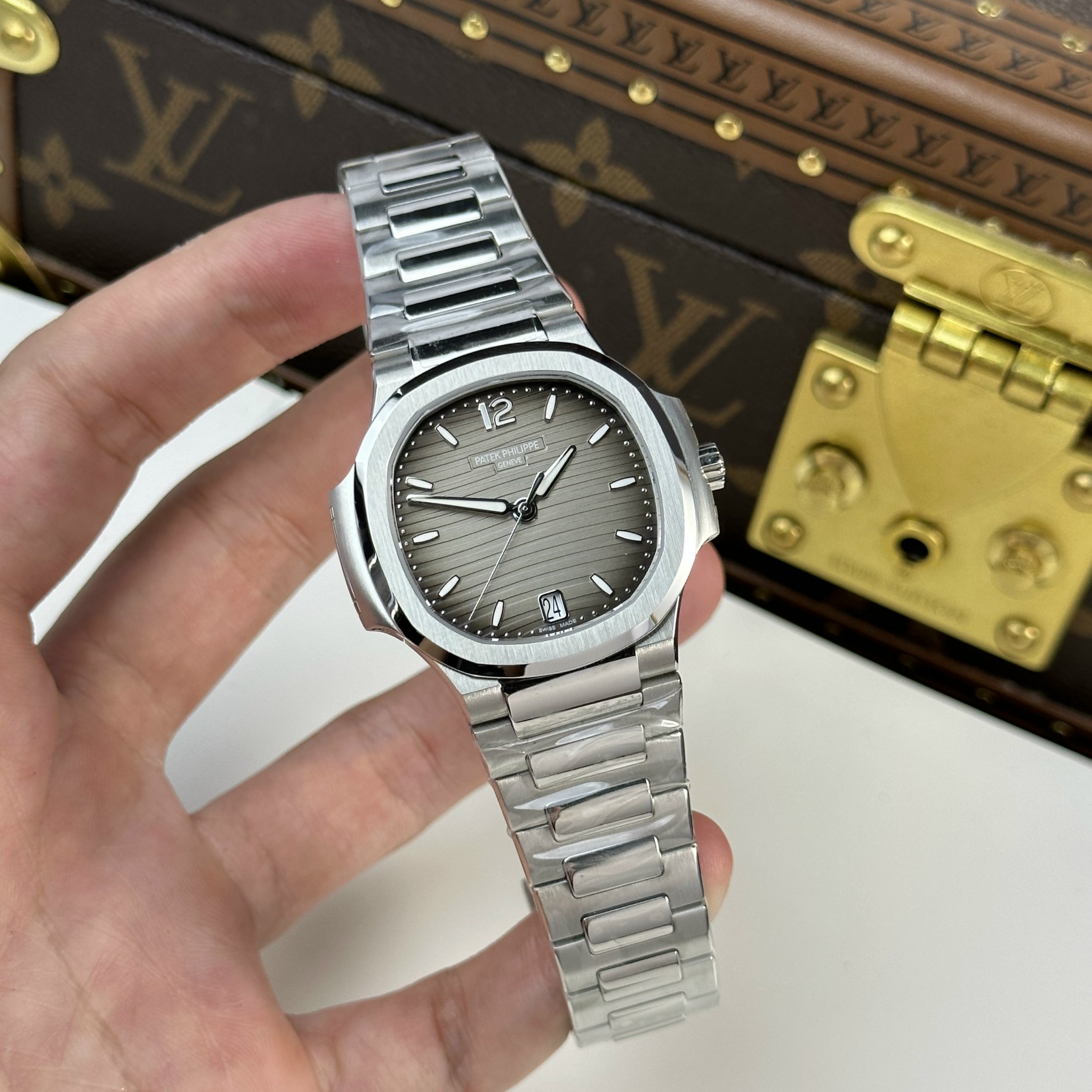 This version has a design similar to the men’s model but with a smaller size, suitable for women’s wrists. The watch case has a diameter of 35.2mm and a thickness of 8.62mm, made from steel, offering a lightweight feel when worn. Designed by Gerald Genta, the Nautilus features a non-traditional round case and integrated bracelet, creating a seamless flow between the case and the strap.