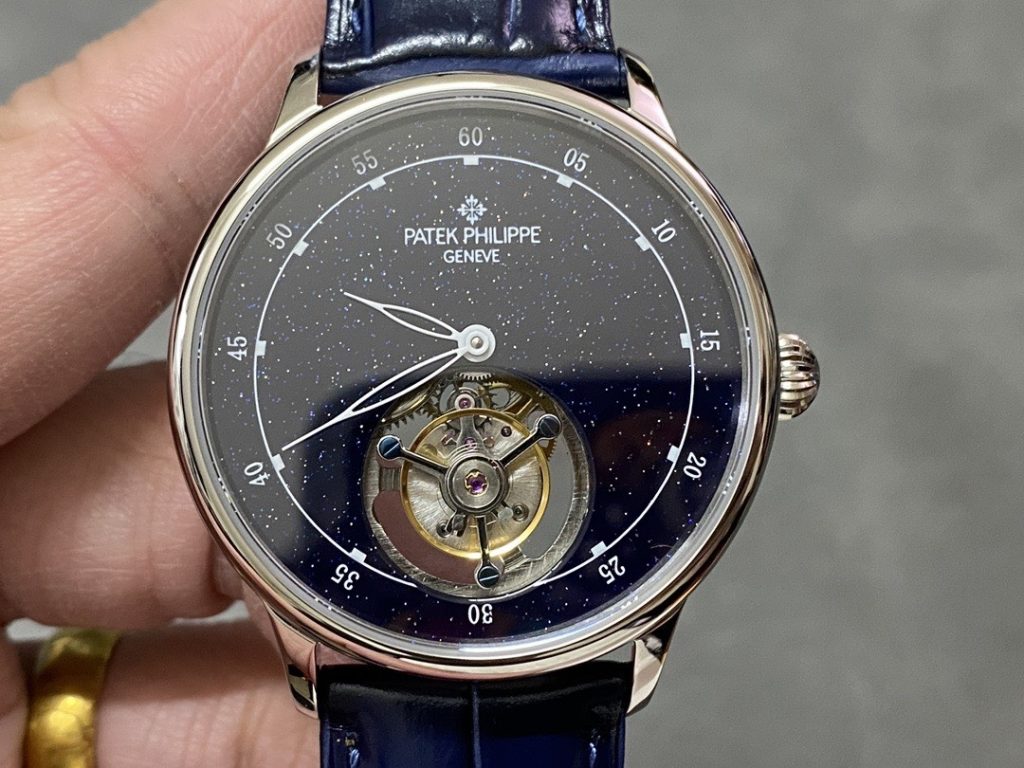 Patek Philippe Tourbillon Replica Watch Blue Dial Leather Strap is available at DWatch Global.