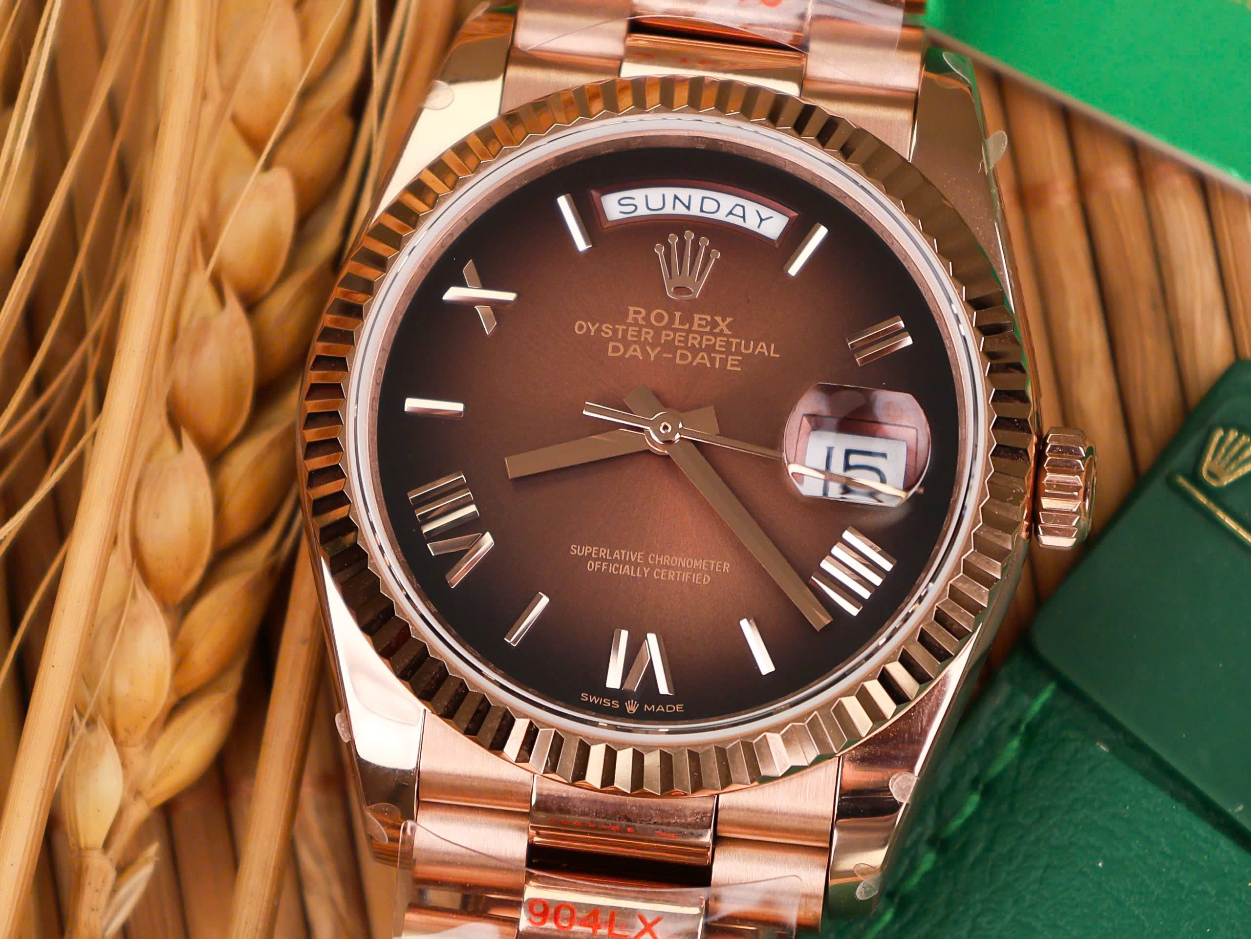 Rolex Best Replica Watch Day-Date 128235 Chocolate Dial Weight 158gram QF Factory 36mm