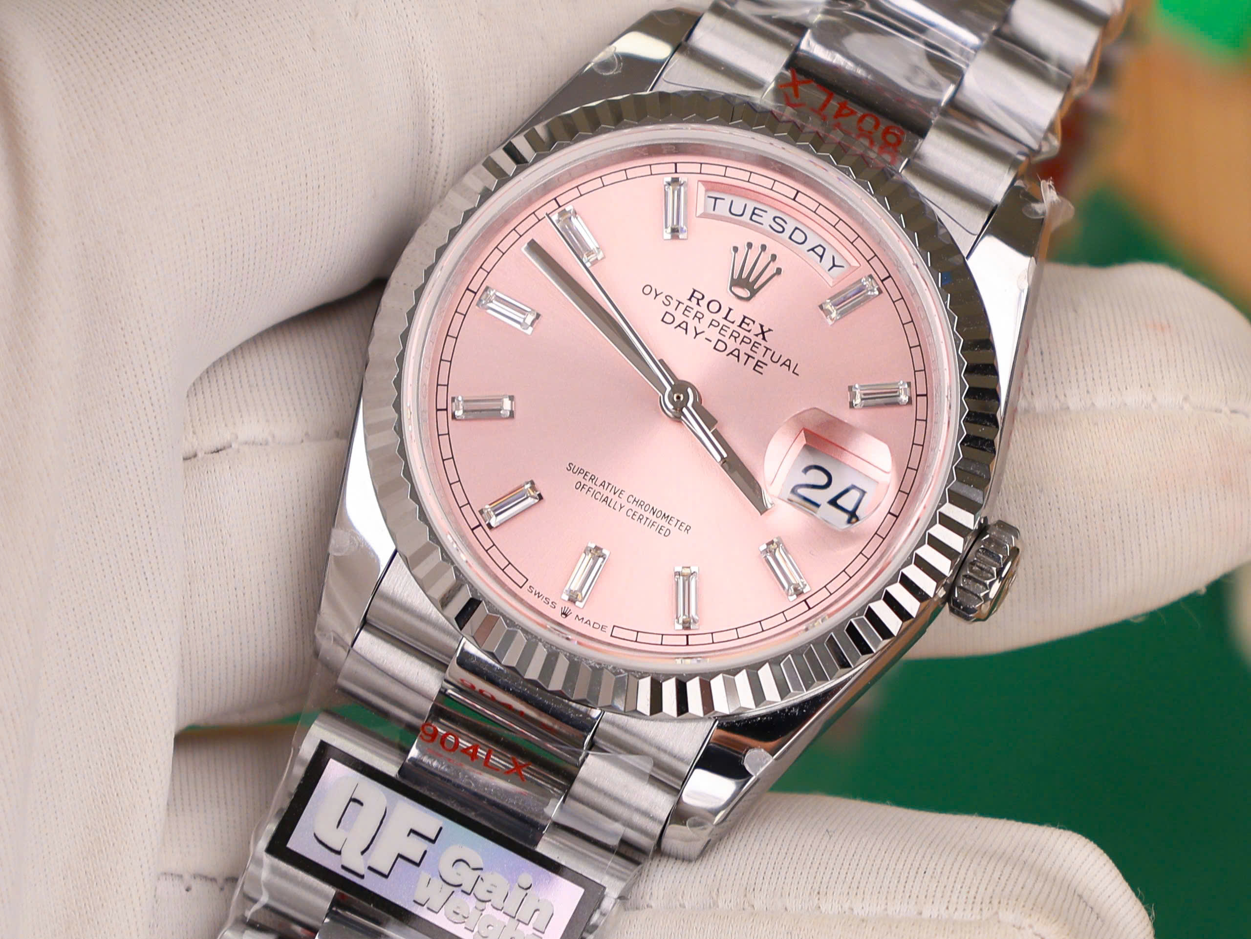 Rolex Best Replica Watch Day-Date 128236 Pink Dial Weight 158gram QF Factory 36mm