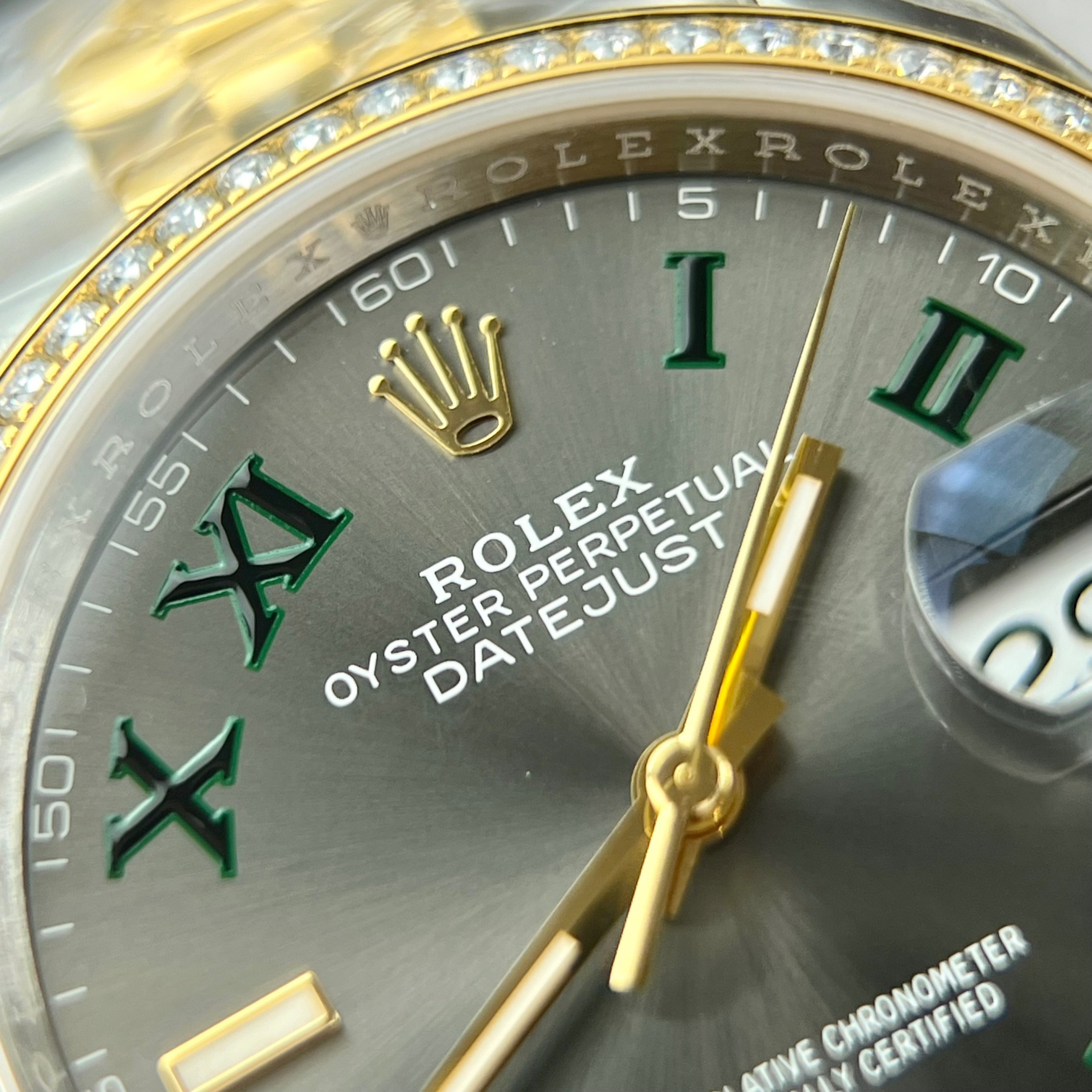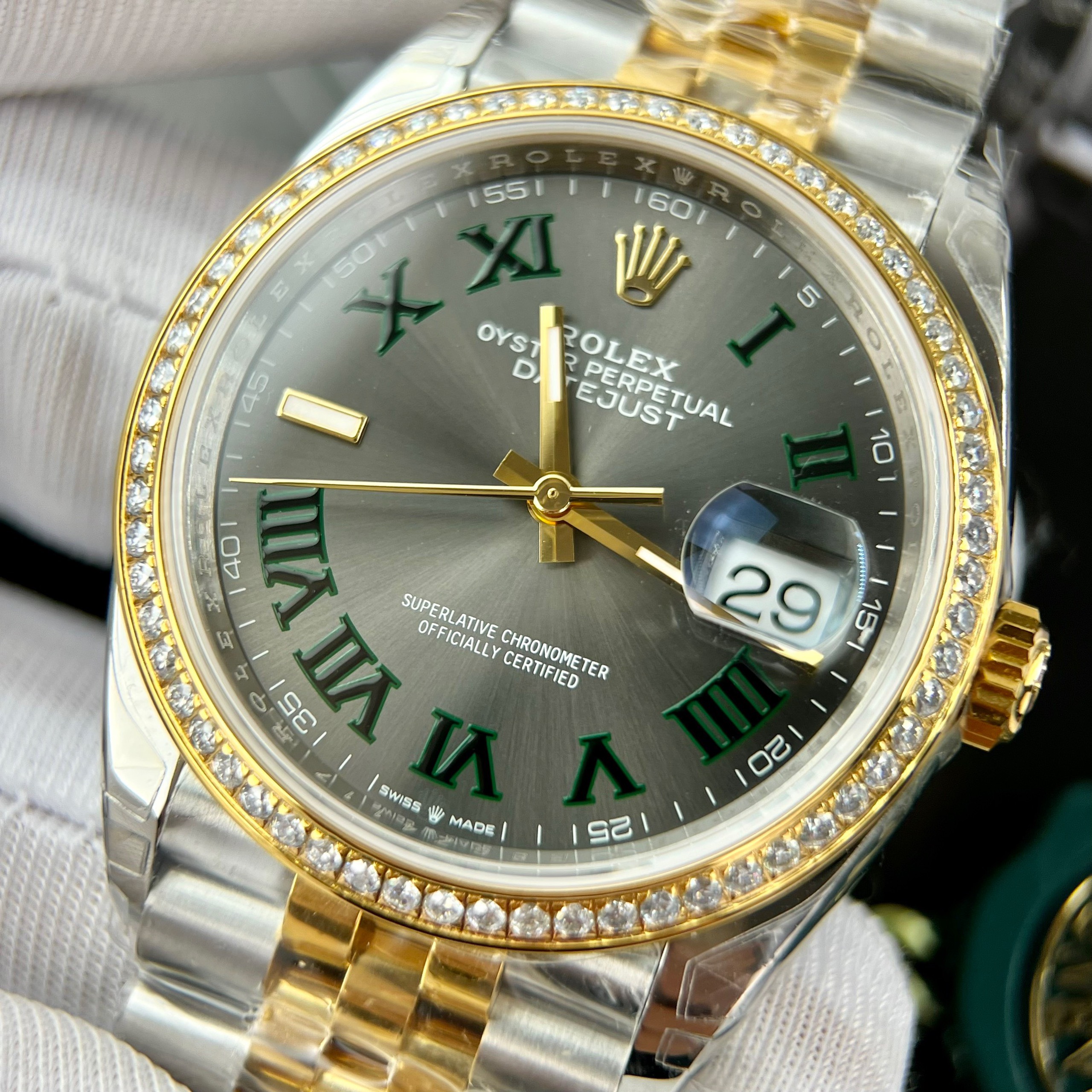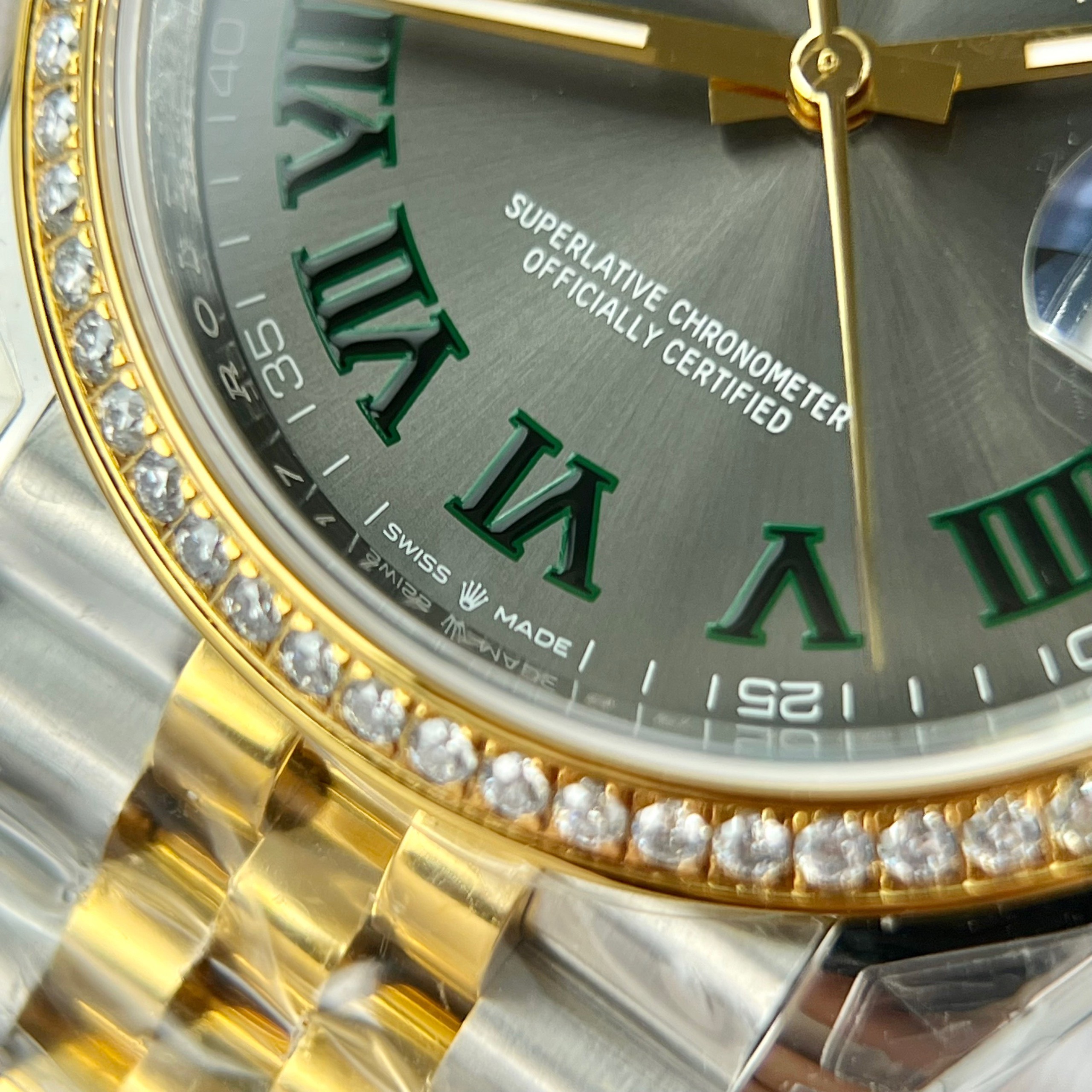 Rolex DateJust 126231 Customs Bezel Moissanite Diamonds Wimbledon Dial VS is available at DWatch Global.