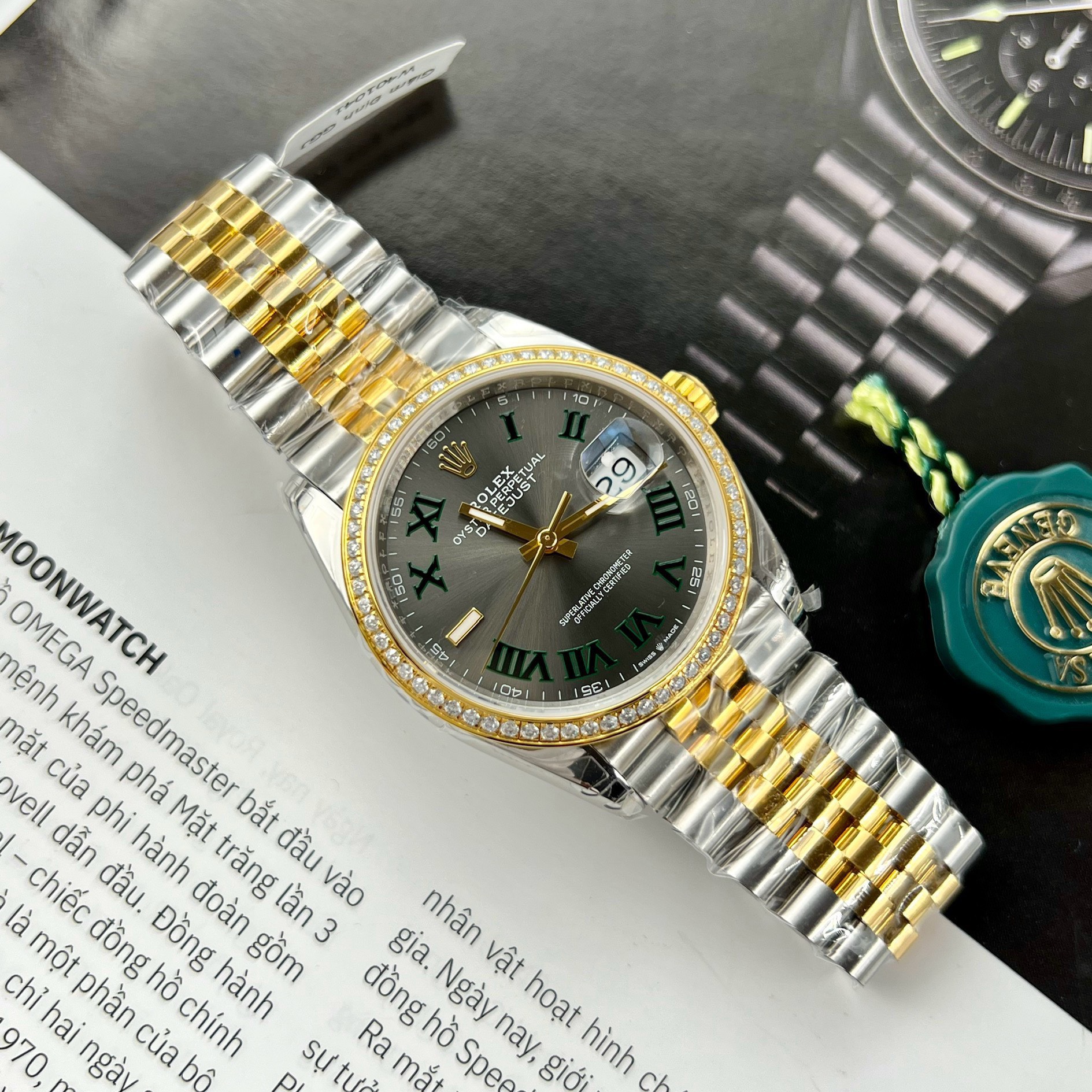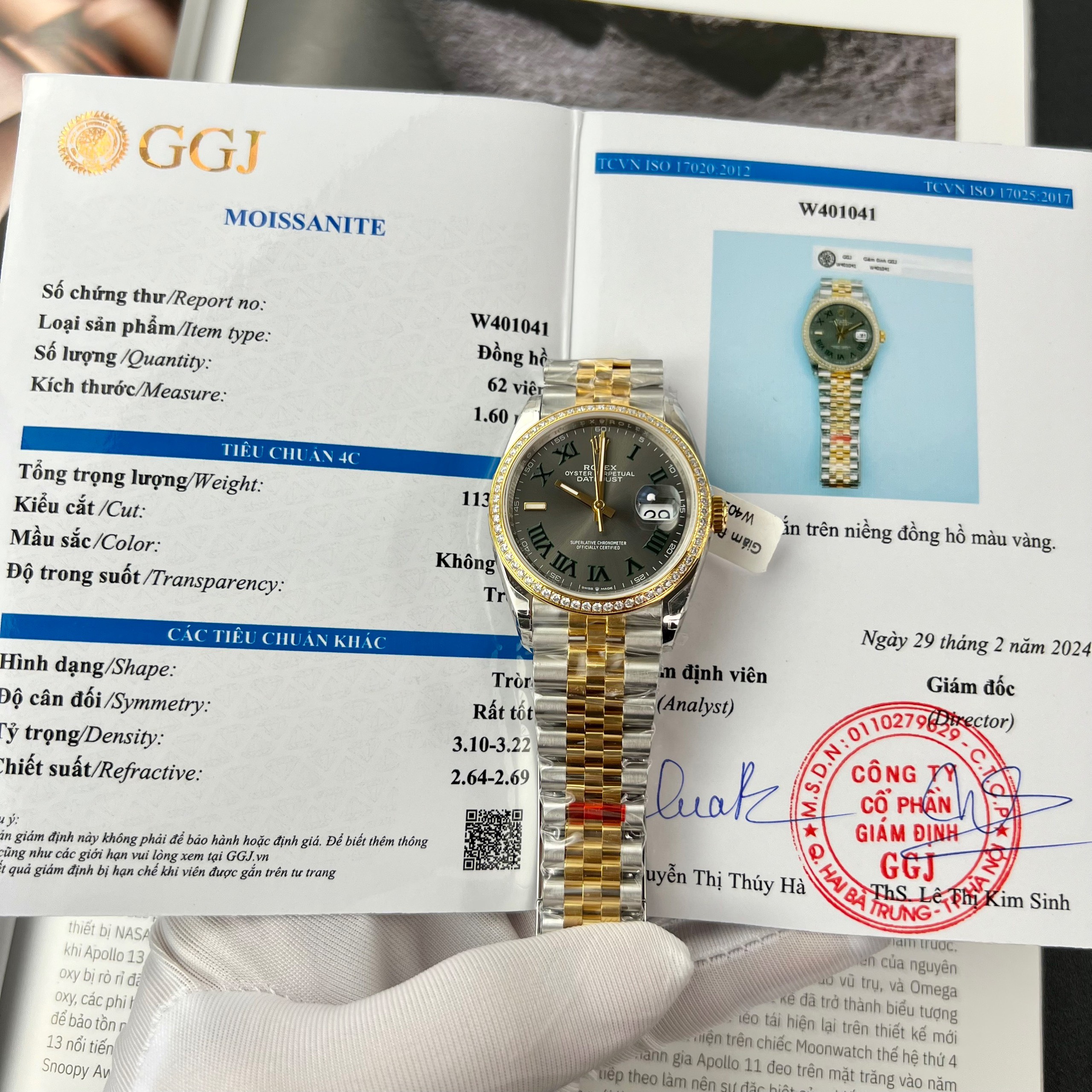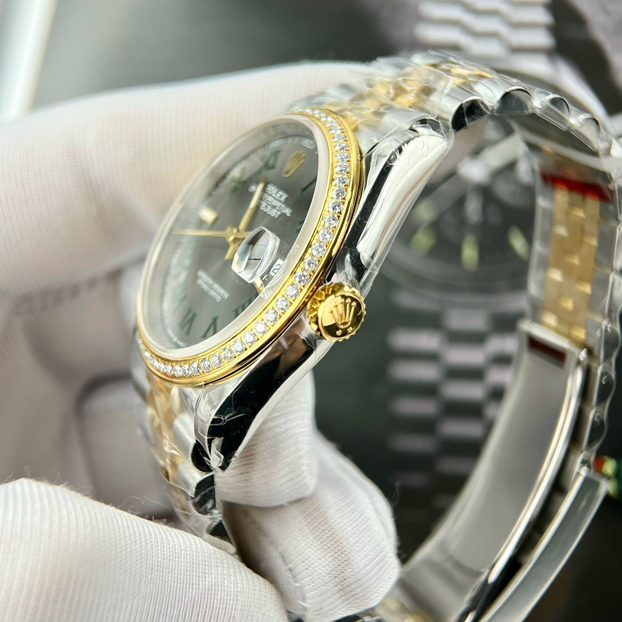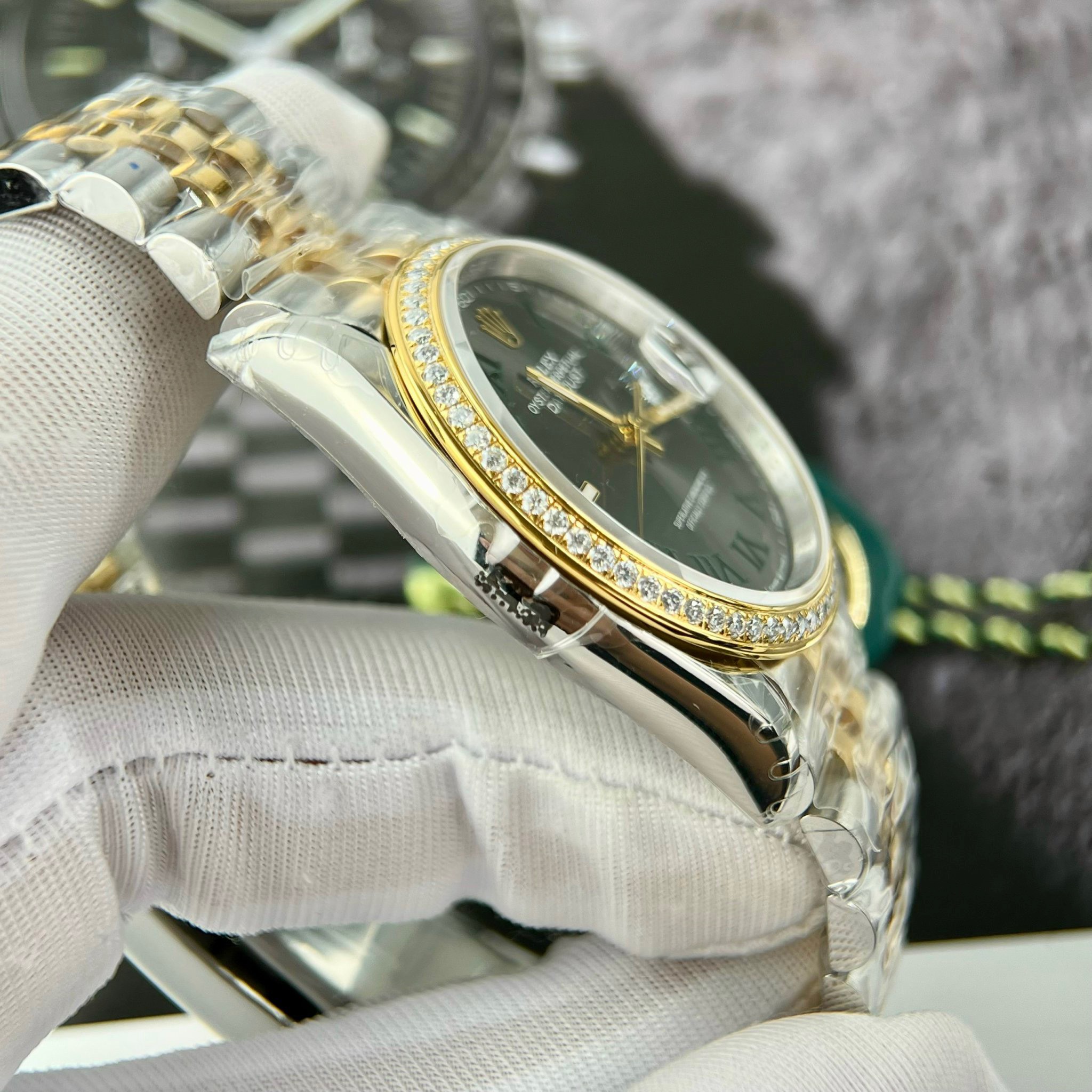 Rolex DateJust 126231 Customs Bezel Moissanite Diamonds Wimbledon Dial VS is available at DWatch Global.