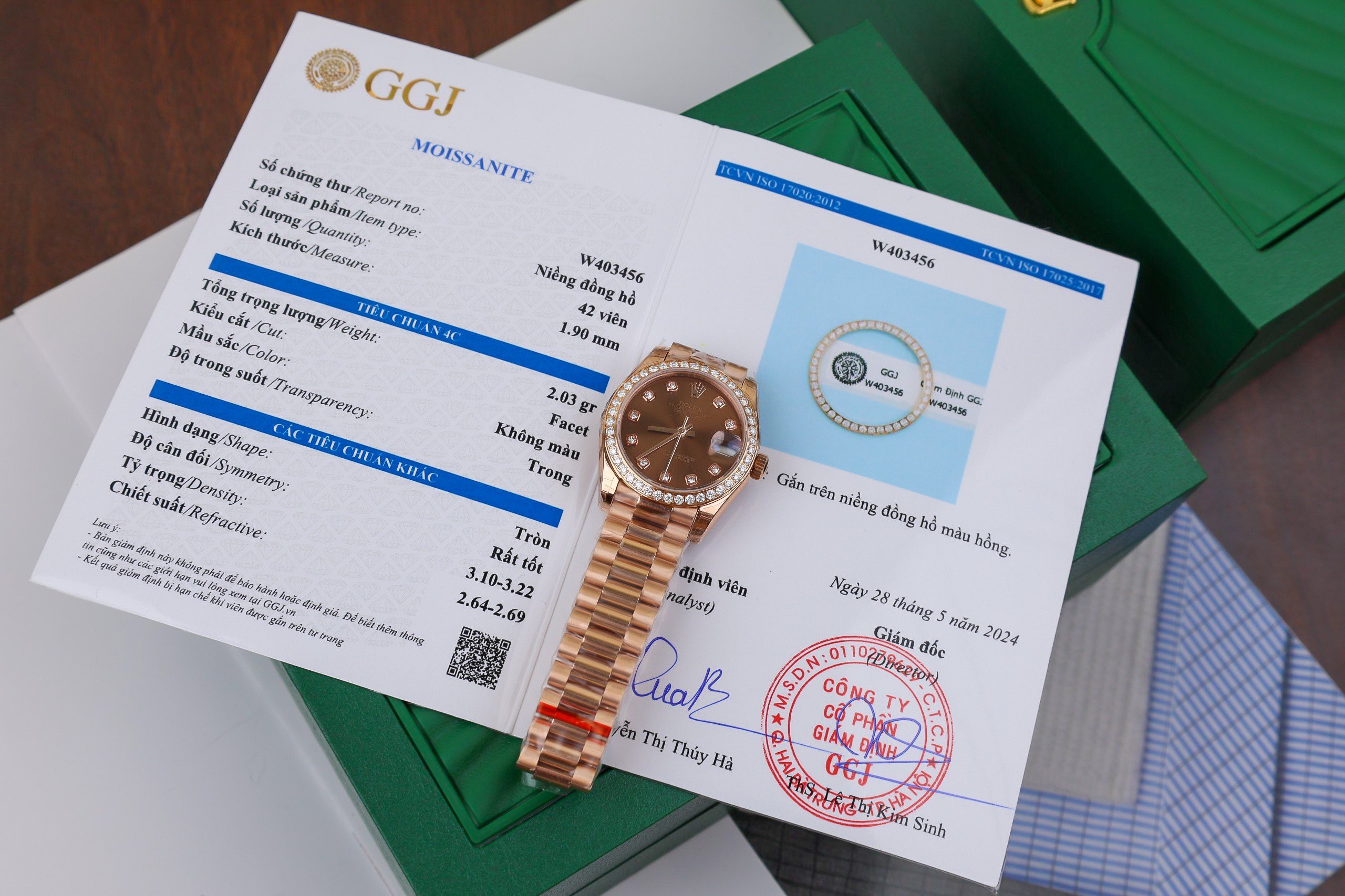 Rolex DateJust Bezel Moissanite Diamonds Chocolate Dial Women’s is available at DWatch Global.